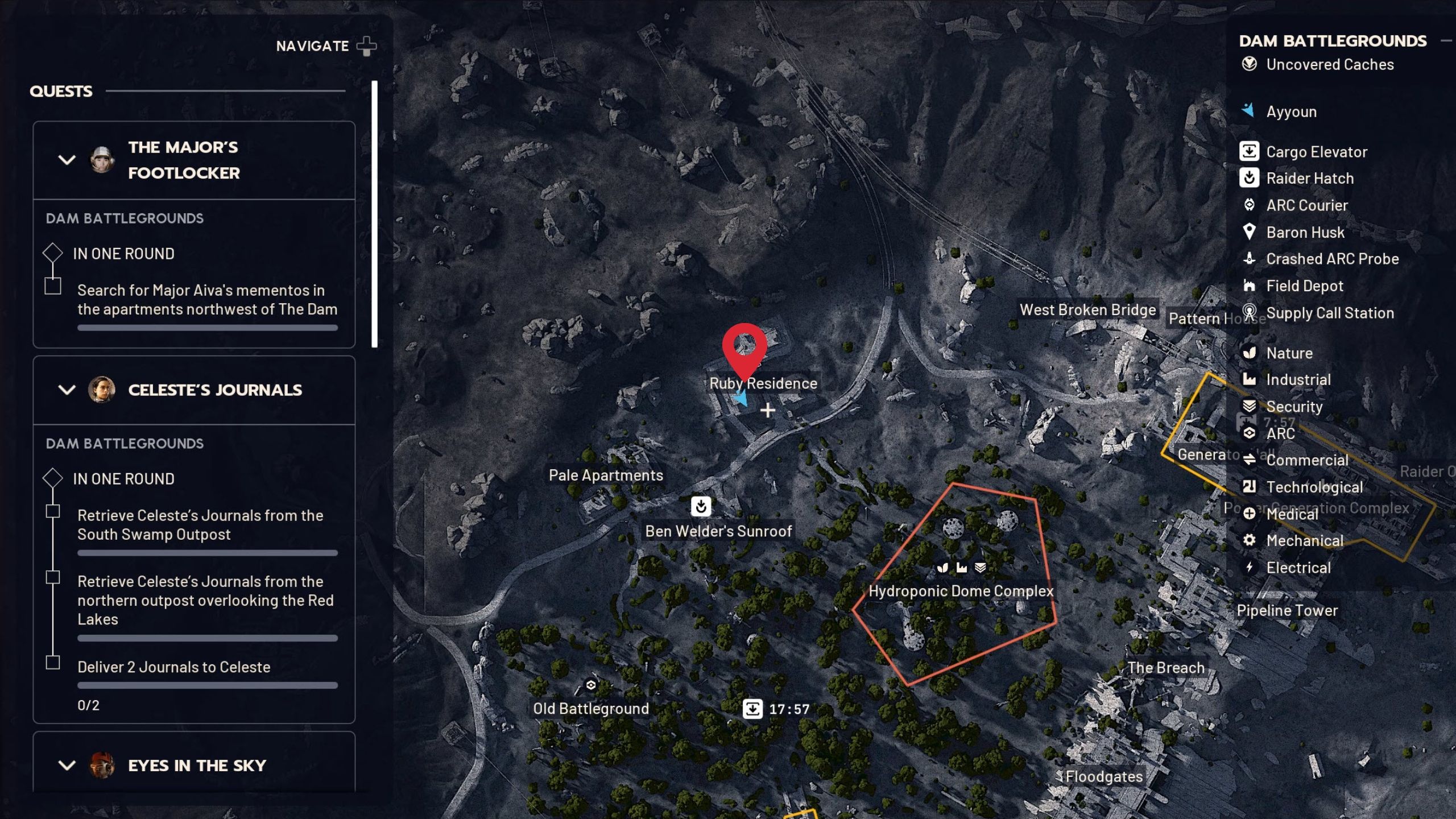 To begin the Major’s Footlocker quest in ARC Raiders, head to the Dam Battlegrounds map. You’ll find Major Aiva’s Mementos inside the Ruby Residence apartment complex, which is in the northwest part of the map. Be aware that this area is often guarded by enemy players, so be prepared for a fight and make sure you have a good set of gear!