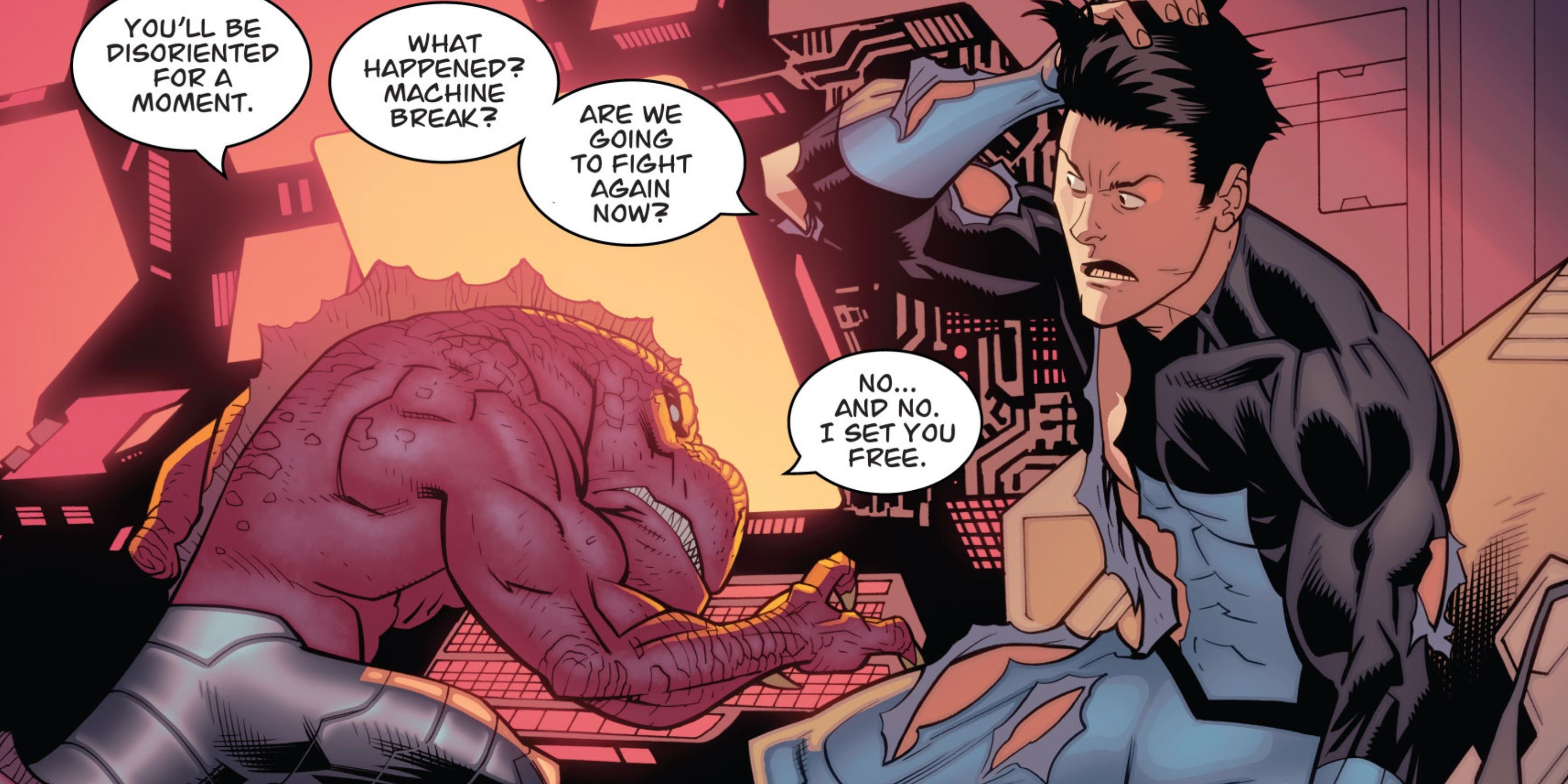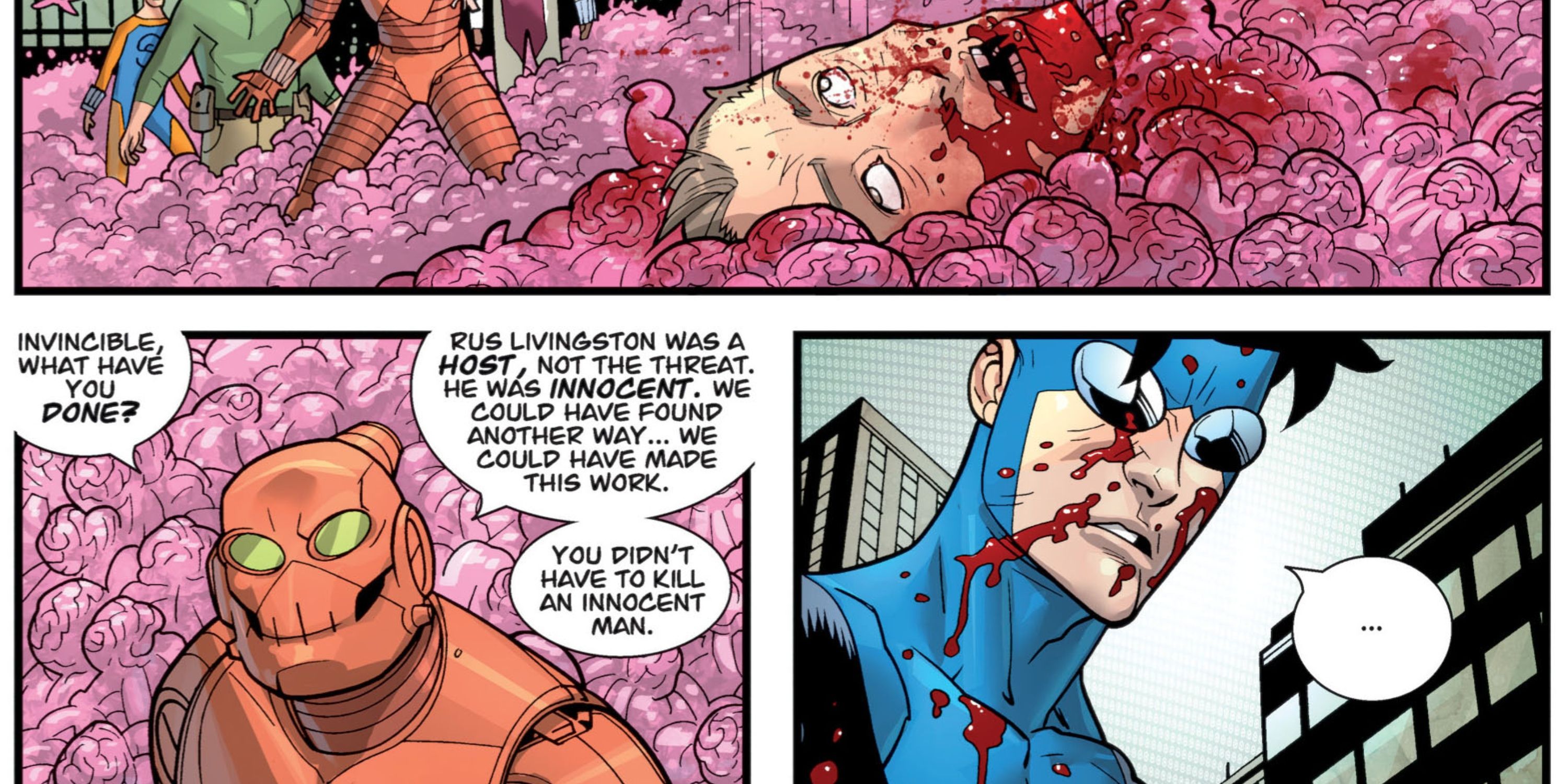 In the scenario where Rus Livingston attempts an invasion of Earth with the Sequids, Robot proposes a strategy to liberate humans from alien dominion, aiming to both protect Rus and address the Sequid issue. However, following the confrontation with Conquest, Mark decides not to gamble on Rus’s safety, leading to his immediate execution. This act underscores Mark’s commitment to upholding his promises, yet it also reveals a darker aspect of him – hinting that the seemingly virtuous nature of Invincible might be starting to unravel, as Rus was an innocent party, and there were likely alternative means to save him.