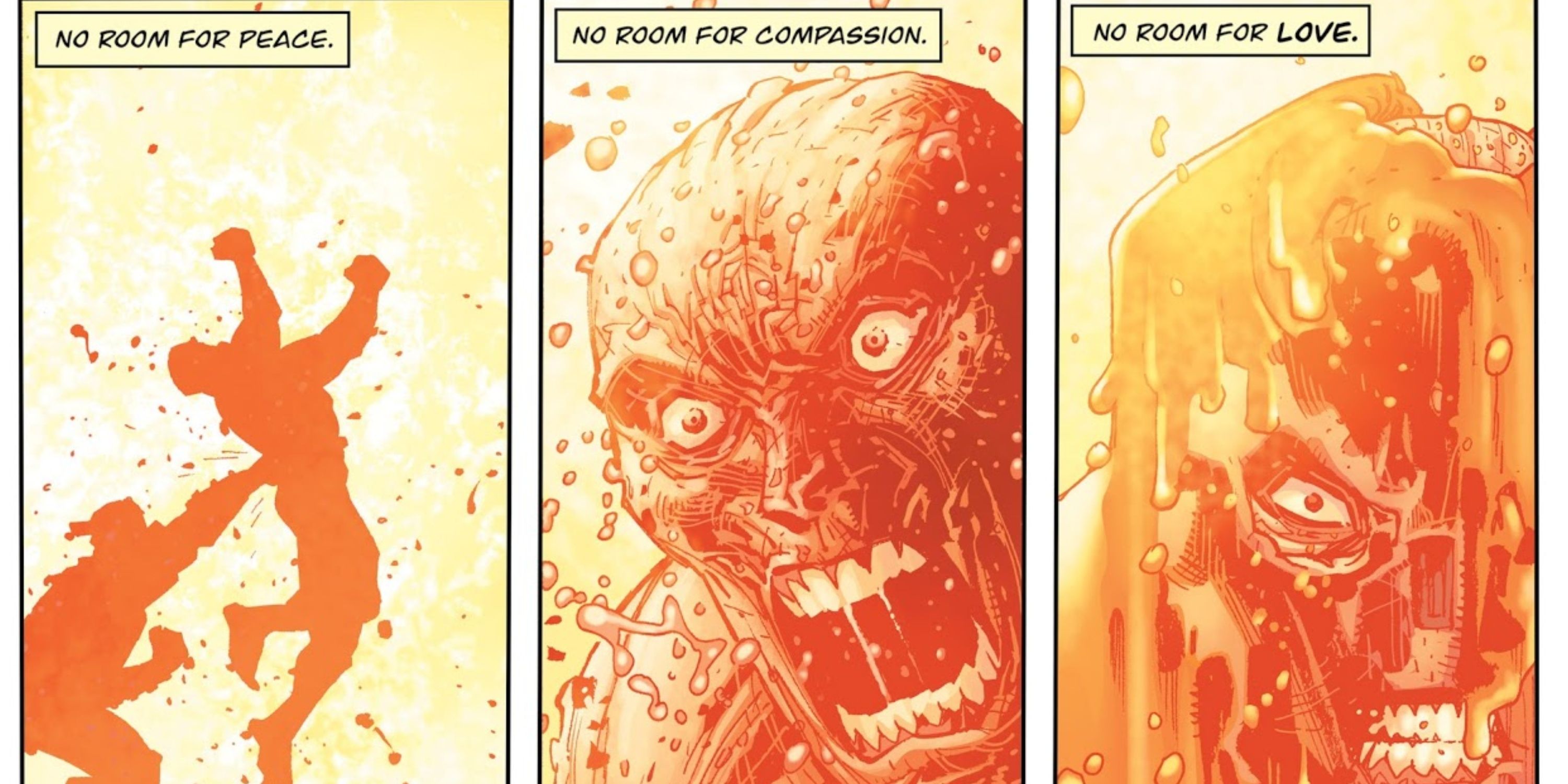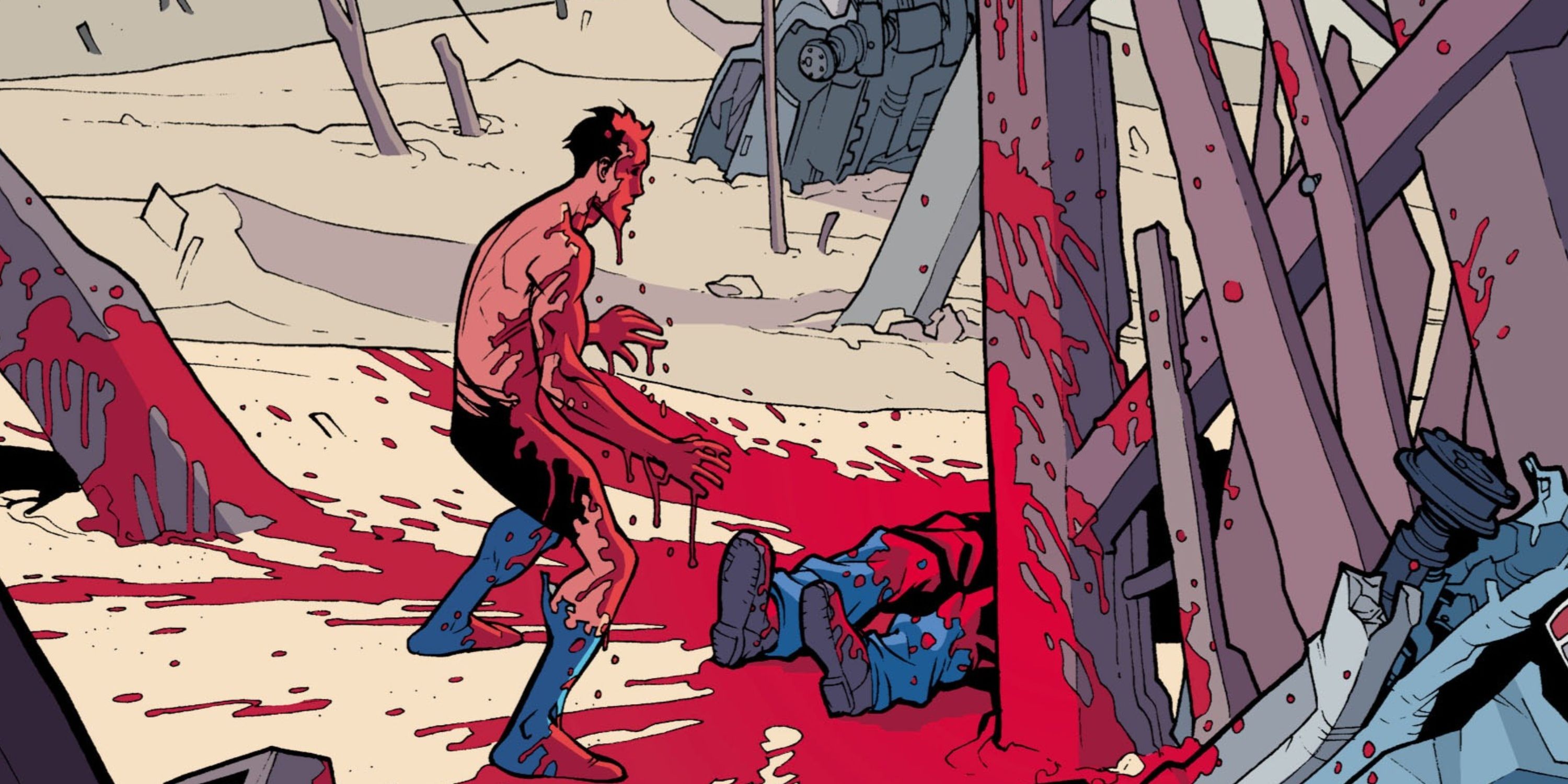 In this scenario, Onaan assisted his father in locating Mark, Eve, and their child Terra. Onaan derived a perverse satisfaction from slaying them all, which explains why Mark swiftly choked him until his head detached, uttering the phrase “Heroism is a bunch of crap“. This act of violence against Onaan underscores that Mark no longer adheres to heroic principles and instead prioritizes safeguarding his family, regardless of how grimy his actions may become.