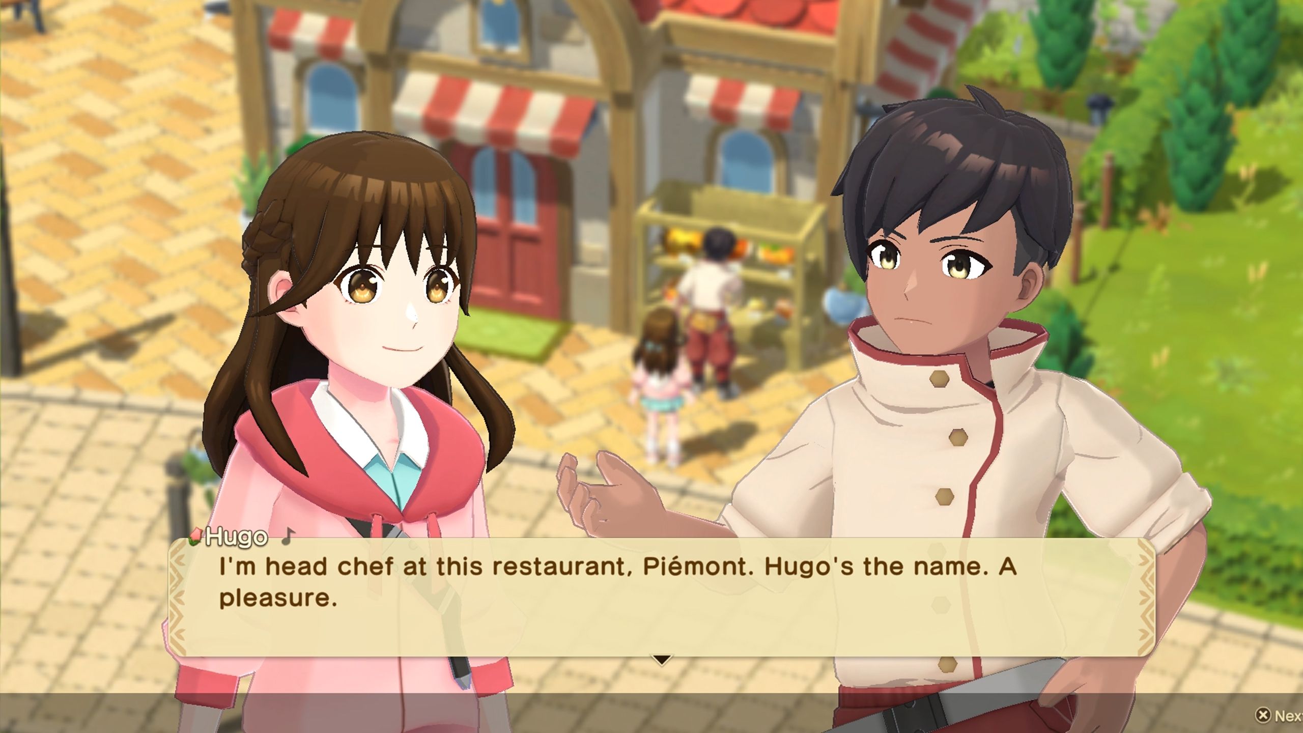 Hugo used to work in a city restaurant but now lives and runs a restaurant called Piemont in Alba. During the game Harvest Moon: Home Sweet Home, the restaurant temporarily closes due to issues with the townspeople. Players, as farmers, will help Hugo reopen it, and eventually get to sample his new dishes – he loves trying out new recipes!