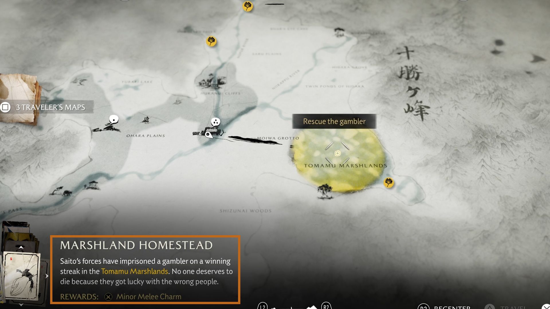 As you continue north from the starting area, you’ll reach the Huranui’s Rest Inn. This location offers several activities and a few engaging side quests. This guide covers everything about the Marshland Homestead quest in Ghost of Yotei, including finding the Gambler and saving her.