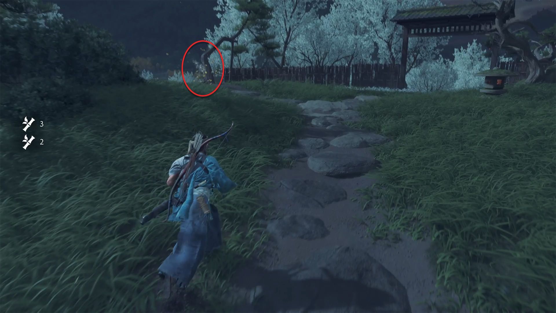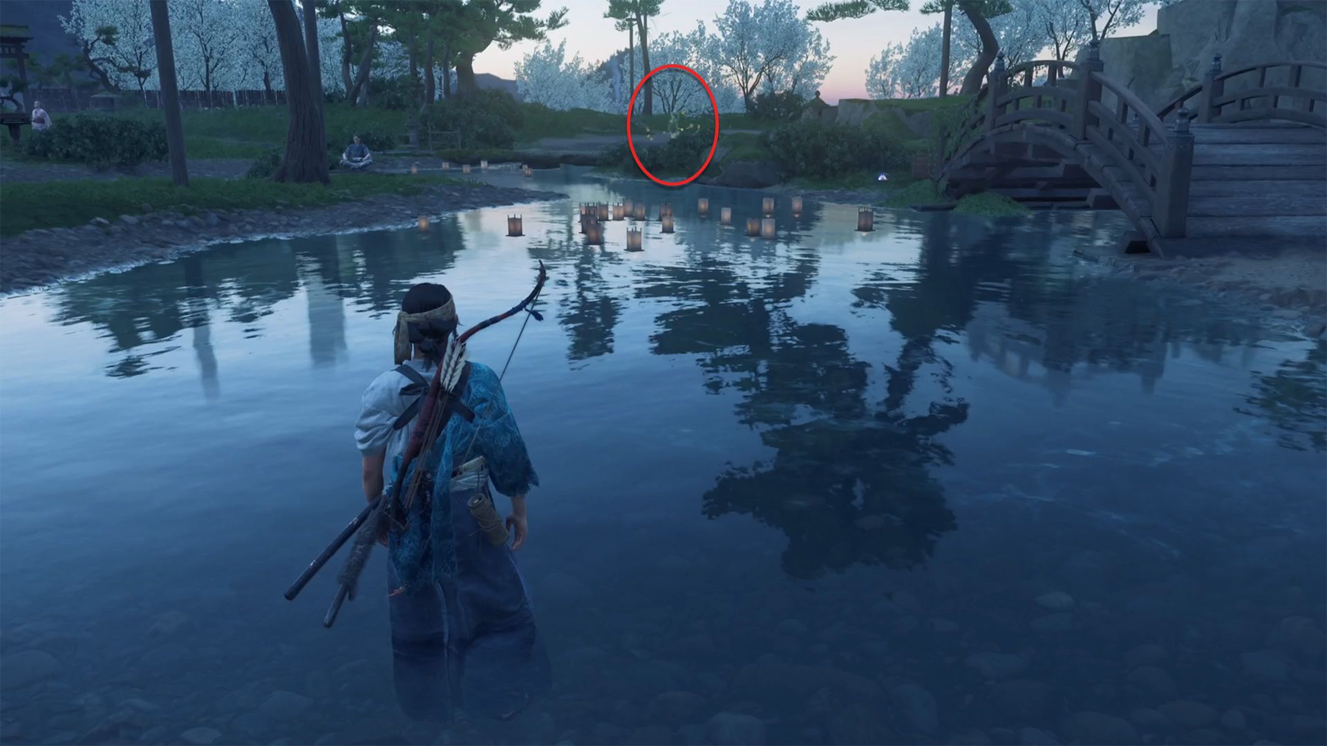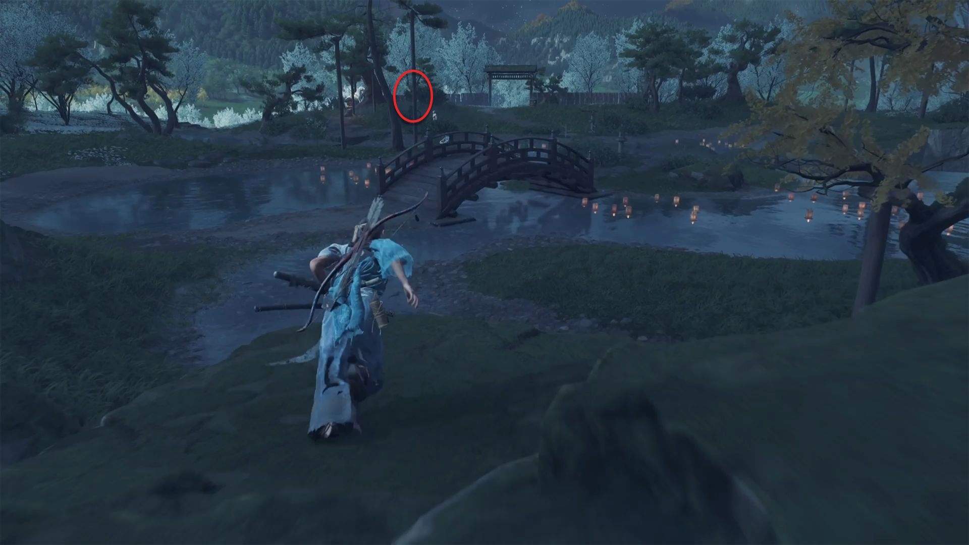 Lastly, after Atsu observes the fish – now much larger since she was a child – a final memory will materialize directly in front of her. Travel to that spot and remember one last time the place where they both planted a young tree together.
