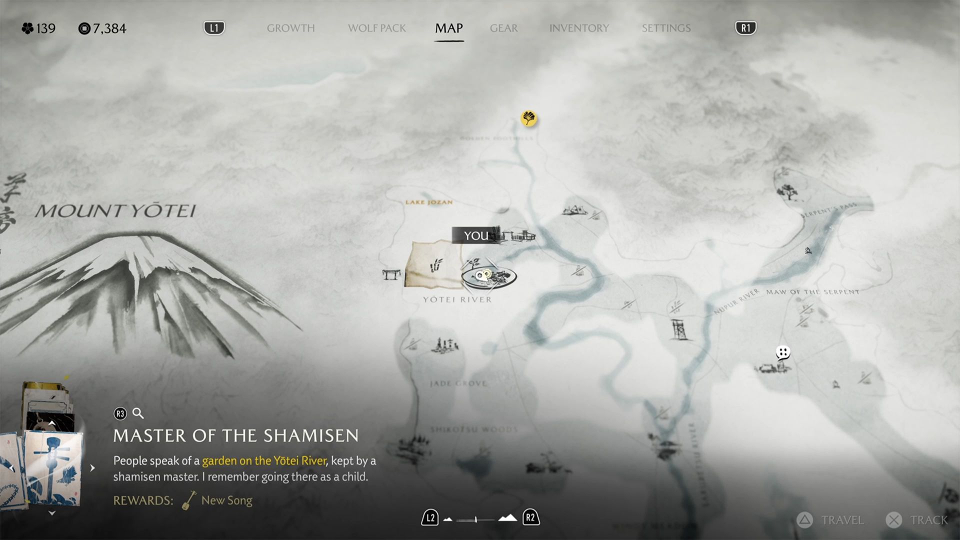 To begin the Master of the Shamisen quest in Ghost of Yotei, go to the garden by the Yotei River. You’ll find it north of both Shikotsu Woods and Jade Grove, and right east of Mount Yotei.