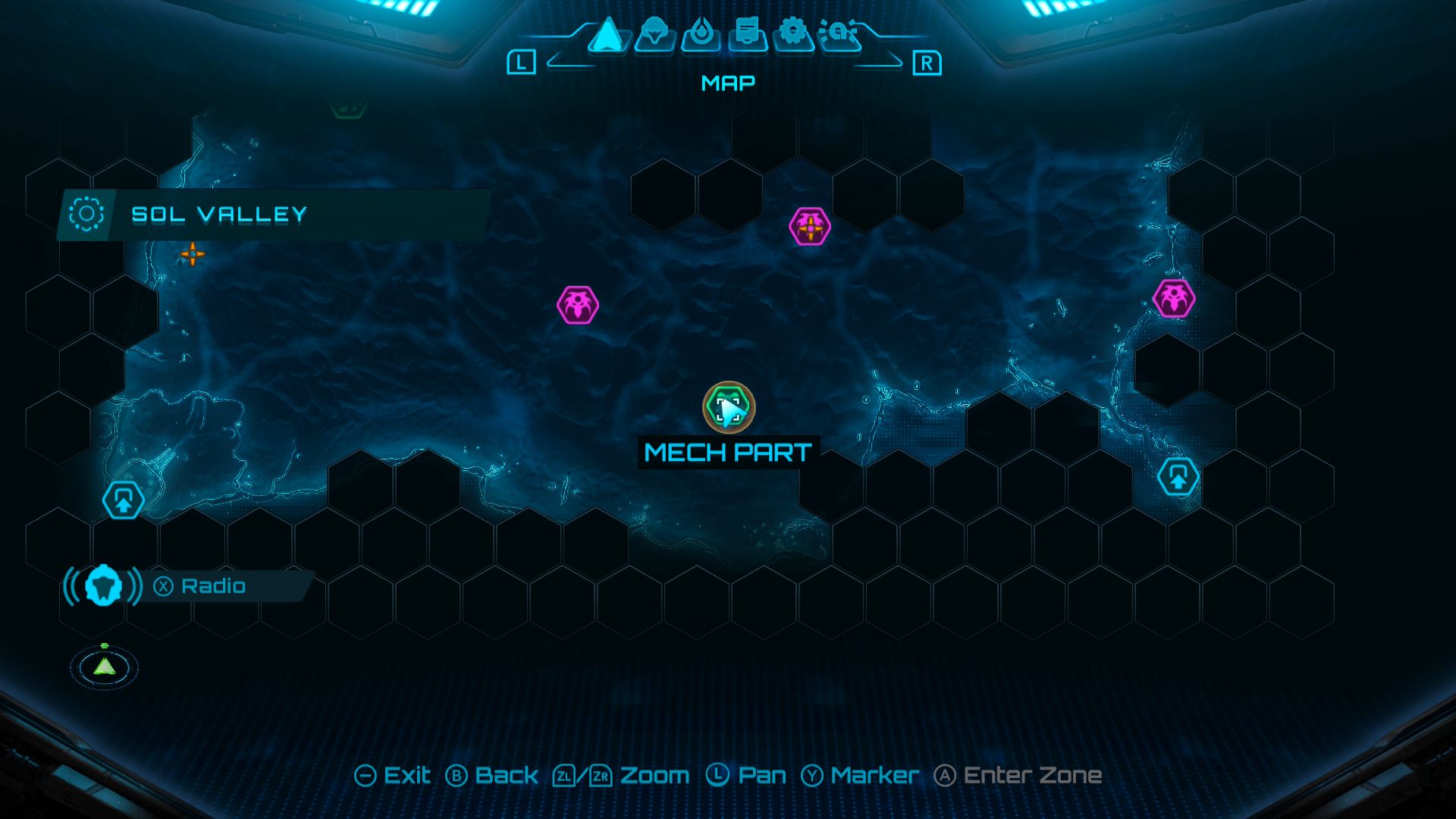 On the far east side of Sol Valley, you’ll find a G.F. Debris site – it’s directly opposite the Fury Green entrance. Go to the blinking capsule there to start a battle with Varmis. To beat Varmis, ram Vi-O-La into the glowing orb on its tail. Then, switch to Morph Ball, go inside its mouth, and place a Power Bomb near the blinking capsule. Once the bomb explodes, you can collect the mech part by interacting with it.
