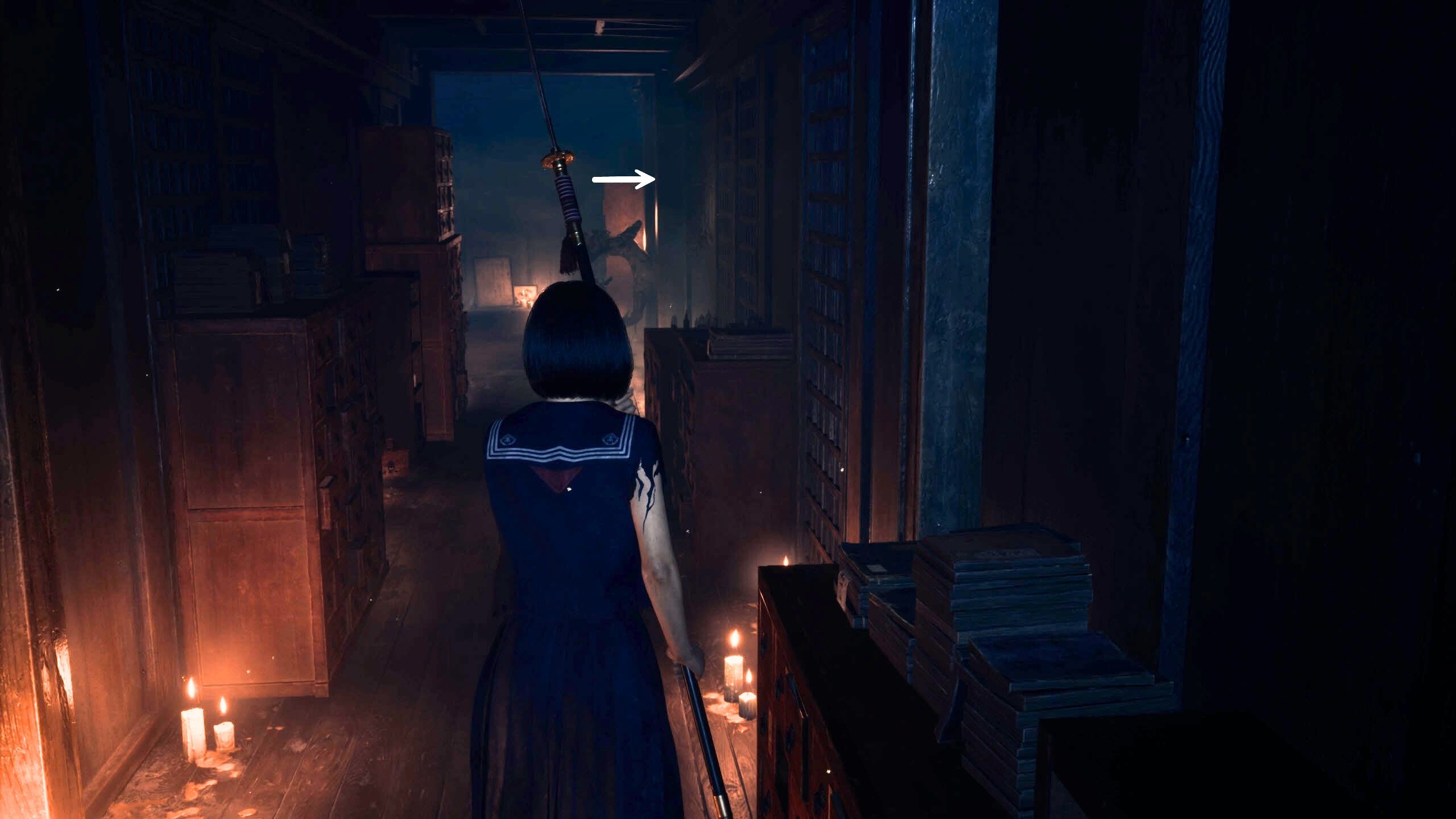 Turn right out of the corridor and look for a moving creature. Follow it until you reach a dead end. Once you defeat the creature, you’ll discover a candle-lit table with a drawing of young Hinako on it. You can only collect this drawing if you’re playing on Hard mode or the Lost in the Fog puzzle difficulty.