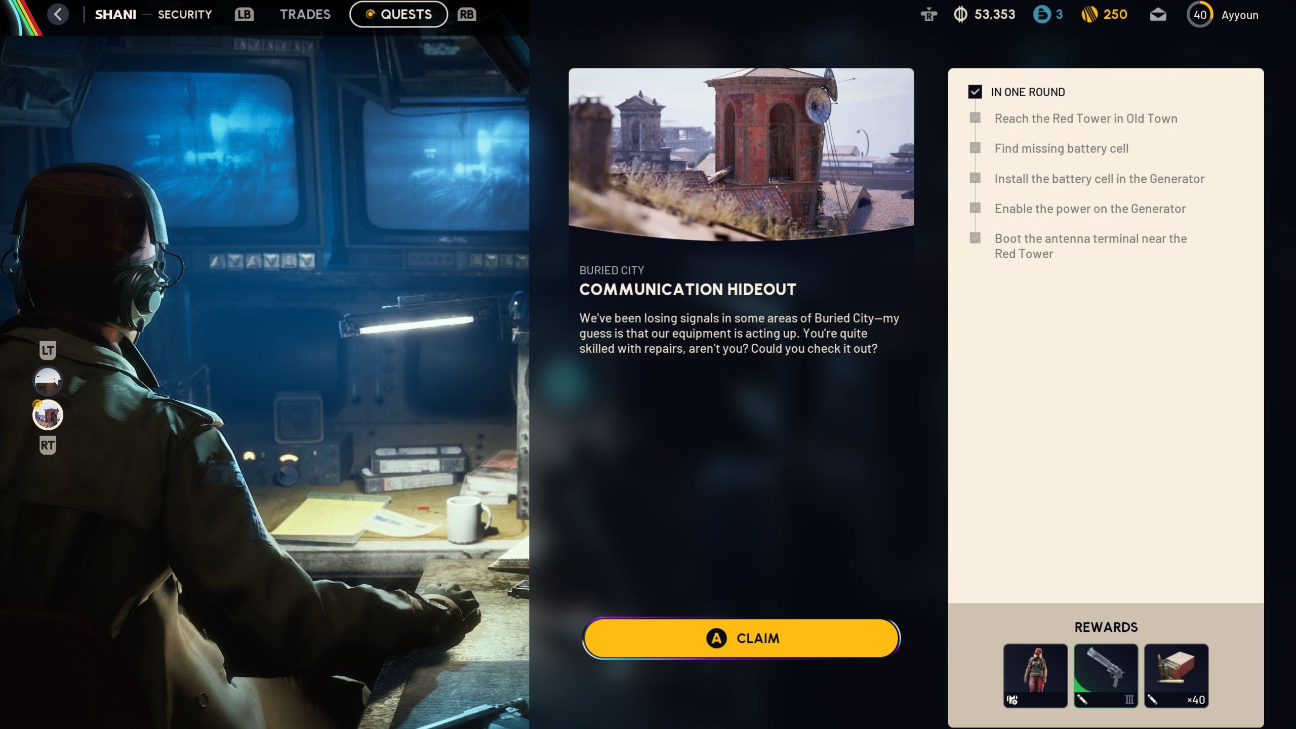 After successfully returning to Speranza, players can claim their rewards from Shani by completing the Communication Hideout quest in ARC Raiders. These rewards include the Crimson Racer (Aviator Color) outfit, one Anvil III weapon, and 40 units of Heavy Ammo.