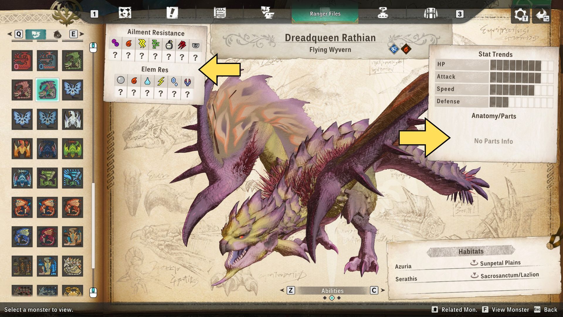 Because the Dreadqueen Rathian is a special, mutated Monstie, its weaknesses to things like ailments or elements aren’t listed in the Monsterpedia. You’ll need to hatch a Dreadqueen Rathian or check your Monstie collection in the Stables to see its specific weaknesses.