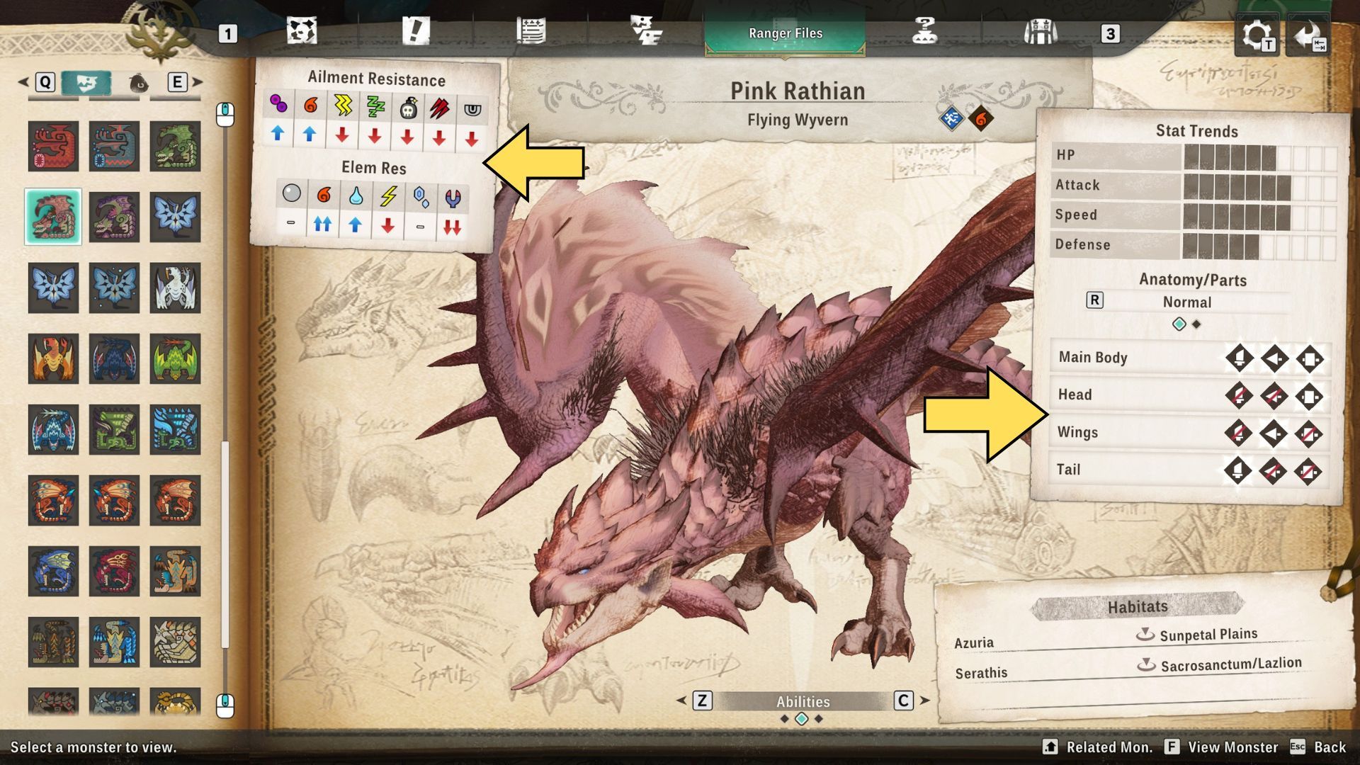 Dreadking Rathalos is a special type of Rathalos, and unlike other monsters, its weaknesses aren’t listed in the Monsterpedia. You’ll need to check its specific weaknesses by looking at its details in your Stables.