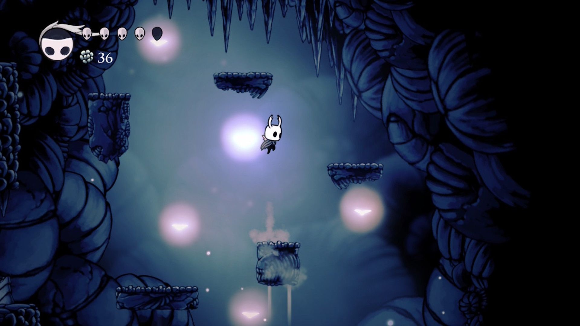 Like other games in the Metroidvania style, Hollow Knight is a 2D adventure with a beautiful, hand-drawn look. It uses a striking color palette of blacks, grays, blues, and purples. Players take on the role of a silent knight exploring the decaying remains of a once-vibrant insect kingdom, now overrun with infection.
