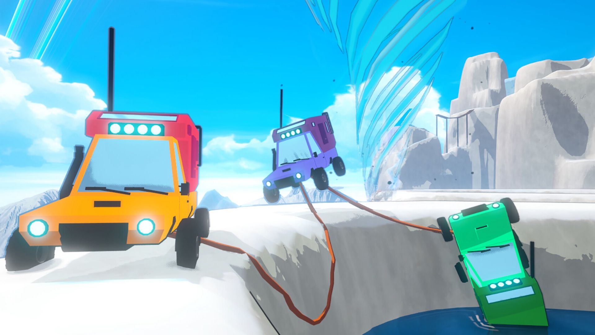 In the game Dangerous Mountain Together, teamwork is crucial for navigating the challenging terrain. The more players involved, the greater the need for coordinated effort. The rope connecting the vehicles isn’t just a way to stay linked—it’s vital for survival. Players can use it to help each other climb, avoid falls, and keep the entire group stable.