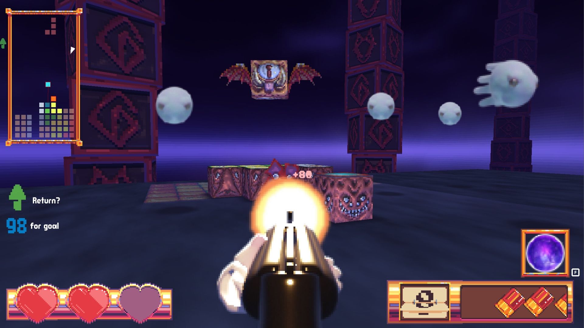 Adding shooting to games like Tetris makes things more exciting and dynamic. However, some players might find the new way the game progresses a little tricky. Players will quickly discover that switching to first-person view lets them recover from mistakes made while solving puzzles. This means that careful planning and strategy become less important, as you can often fix problems during the action-packed shooting segments.