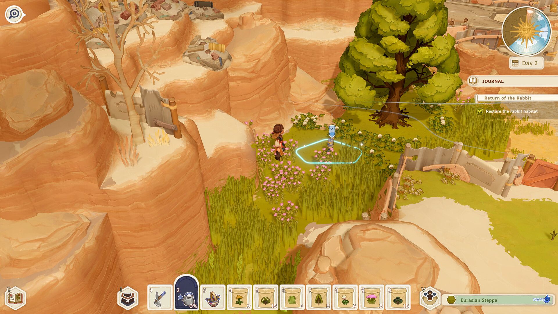 In The Regreening, you play as a Viri – a descendant of humans with the power to restore life to a barren world. By planting seeds, you’ll bring landscapes back to life, transforming deserts into thriving forests, meadows, and wetlands filled with plants, animals, and even magical rain. As a Viri, you can discover and grow new plant species, help local creatures rebuild their homes, and learn how plants and animals work together. You’ll shape the world to your liking, creating beautiful, lively ecosystems. Like other relaxing life-sim games, you can also gather old junk and turn it into useful tools or decorations for your home.