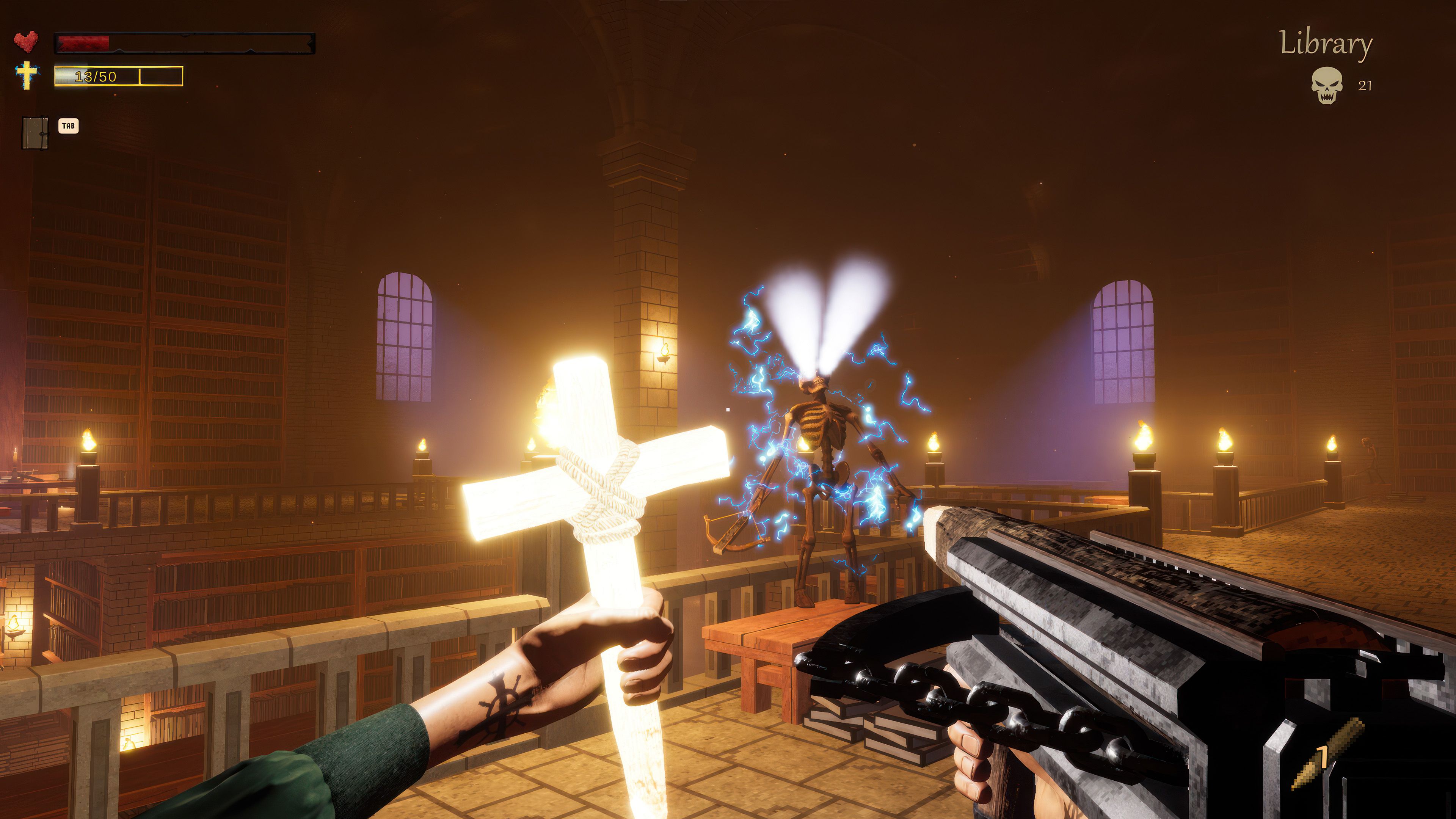 - FIRST-PERSON STAKE COMBAT – Shoot, pin, and ignite enemies using environmental interactions.