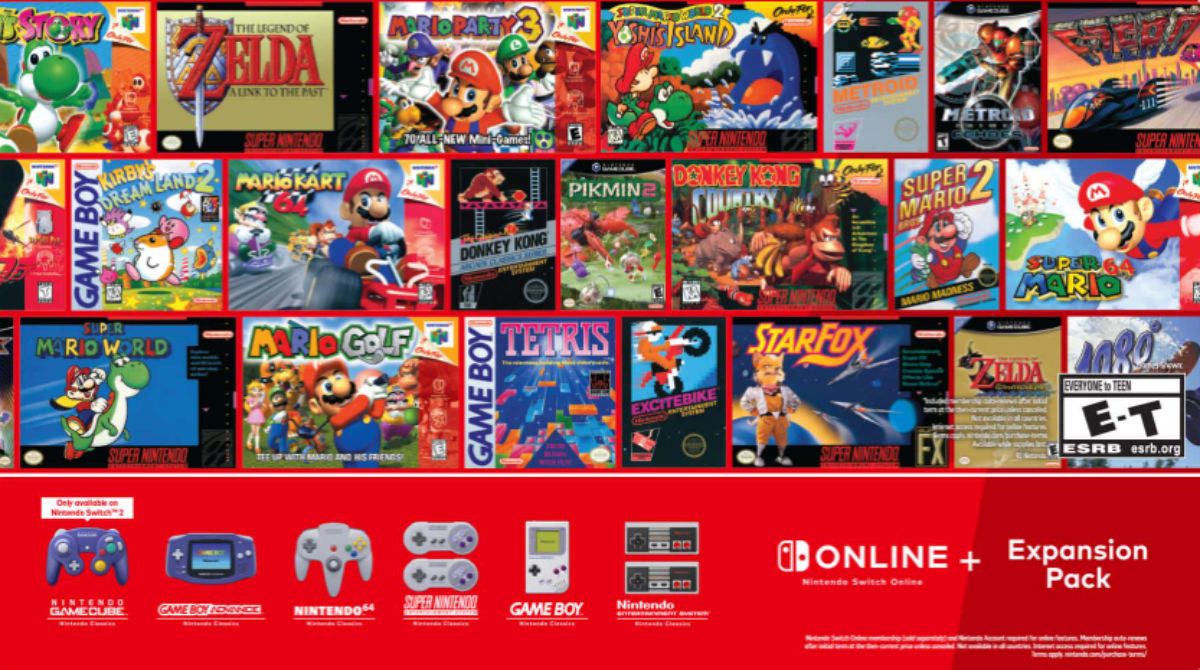 A promotional image on Walmart’s website for the Nintendo Switch Online subscription features several games included with the service, including two titles that haven’t been officially announced yet.