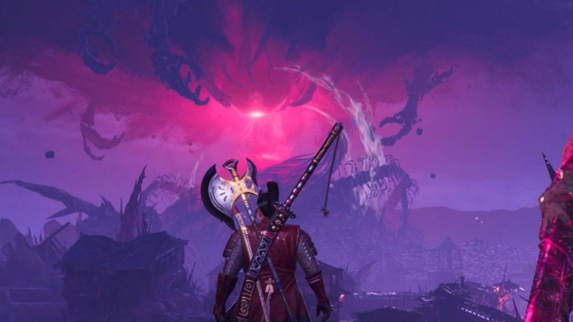 Nioh 3 takes place across different eras, each featuring a large, unique environment. The demo I played was set during the Bakumatsu period, in a city infested with Yokai. A huge, crimson structure called the Crucible loomed in the background – it was the source of the Yokai’s power and the player’s ultimate goal to destroy.