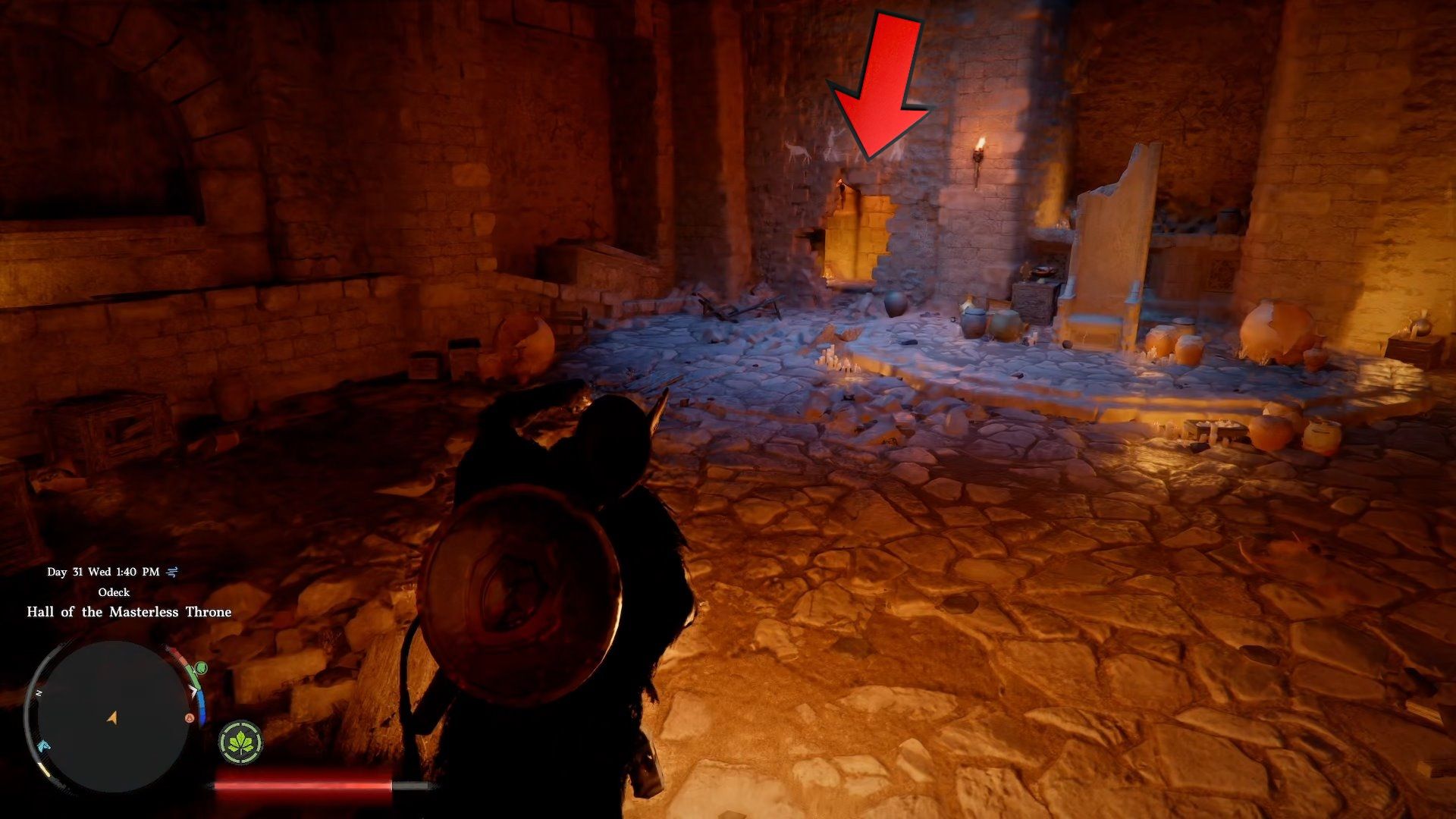 The Oath Ring Shield is hidden in Crimson Desert, beneath some ruins in the small town of Odeck. Odeck is located in the northwestern part of the map, north of Silver Wolf Mountain.