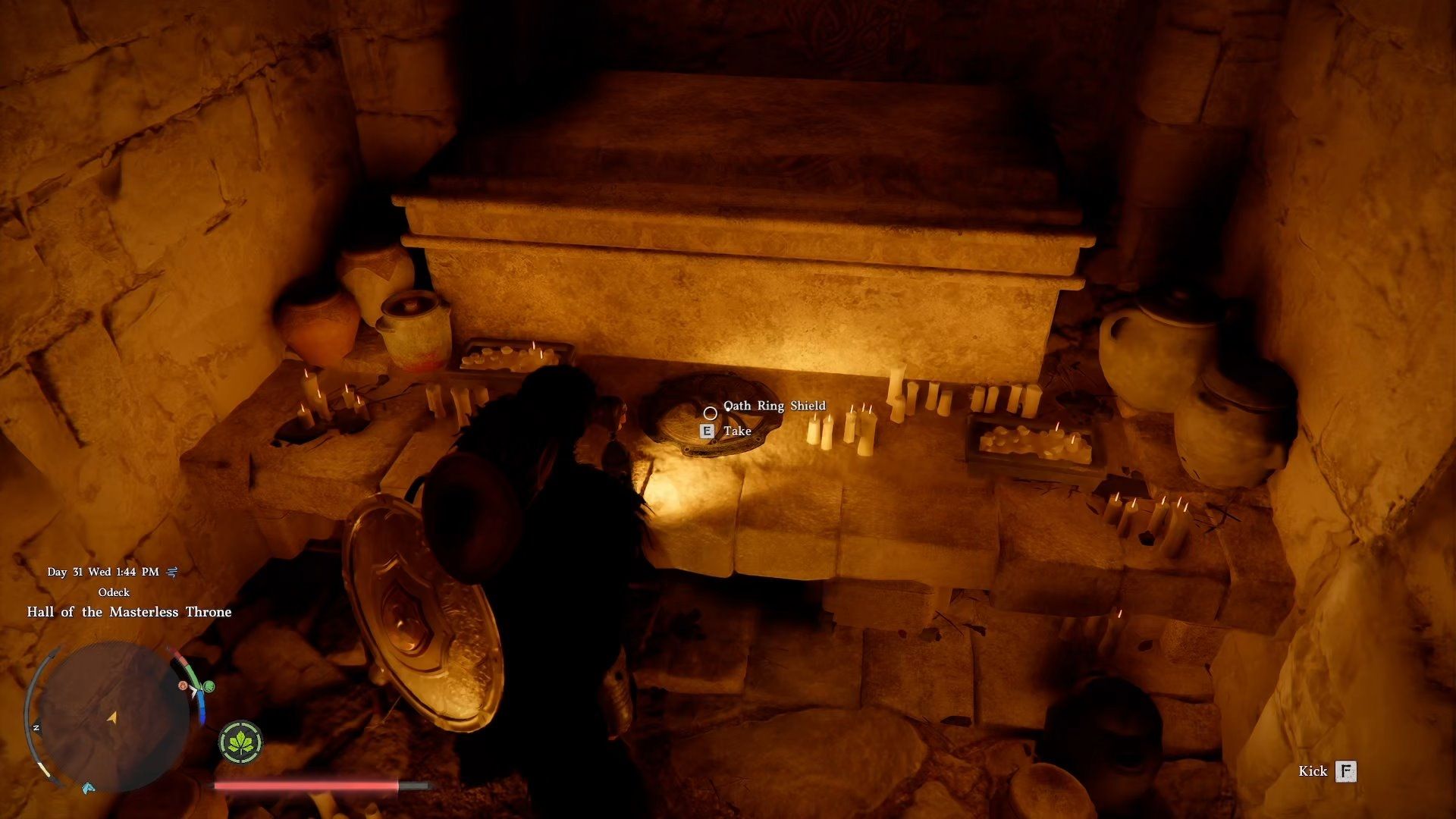 - Enter the room and pick up the Oath Ring Shield from the altar.