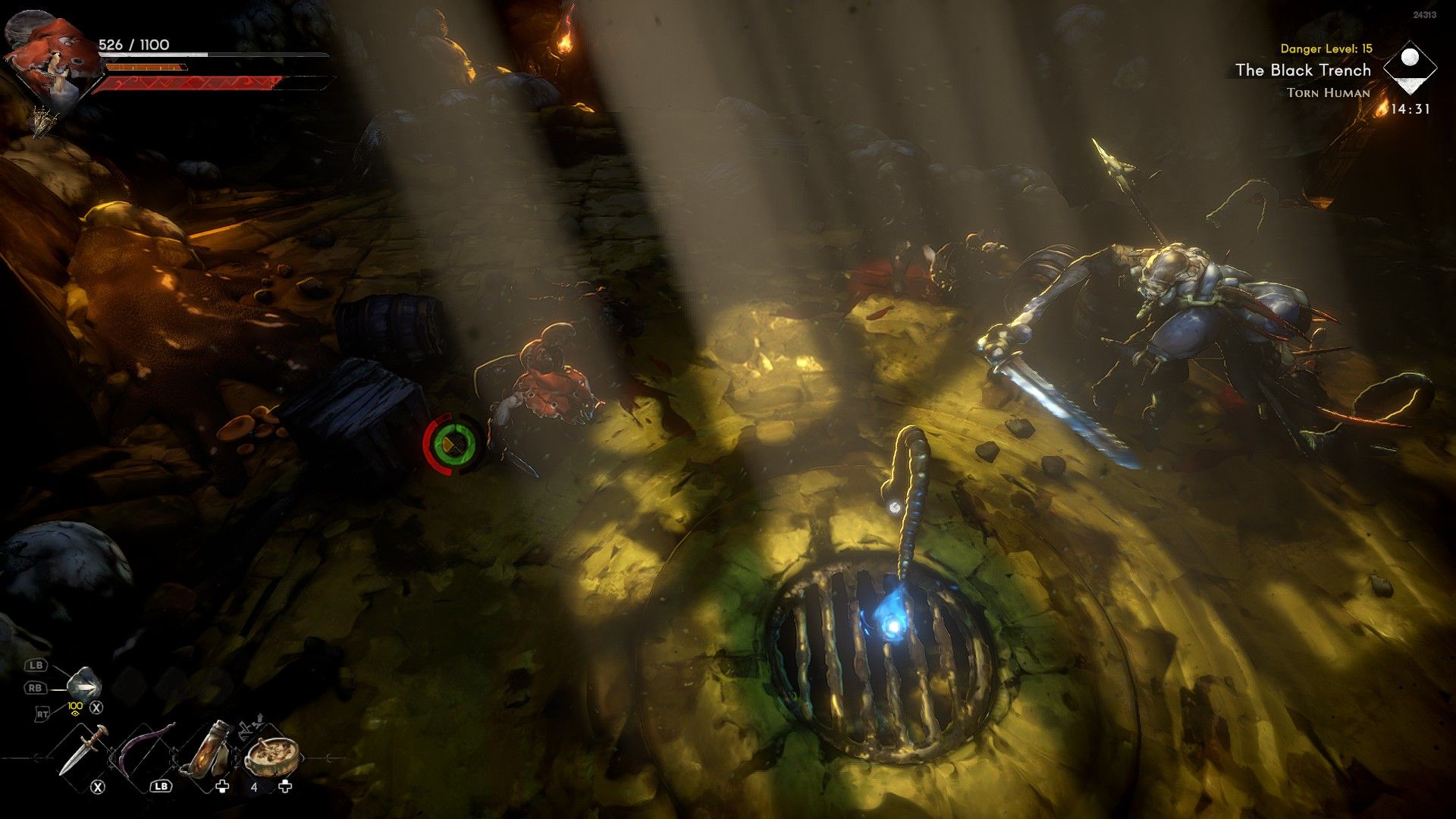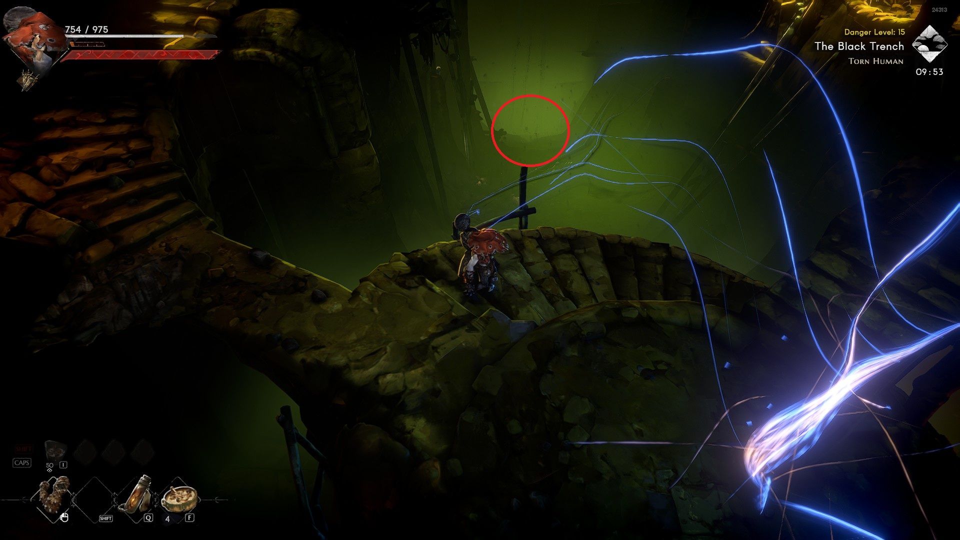To begin the Black Trench, head left to unlock the Whisper. Then, take the stairs down and go to the spot shown in the image. You’ll find the Drainage Cellars Key there, which unlocks the door to the rest of the dungeon. Return the way you came, staying close to the left wall, and use the key to open the door.