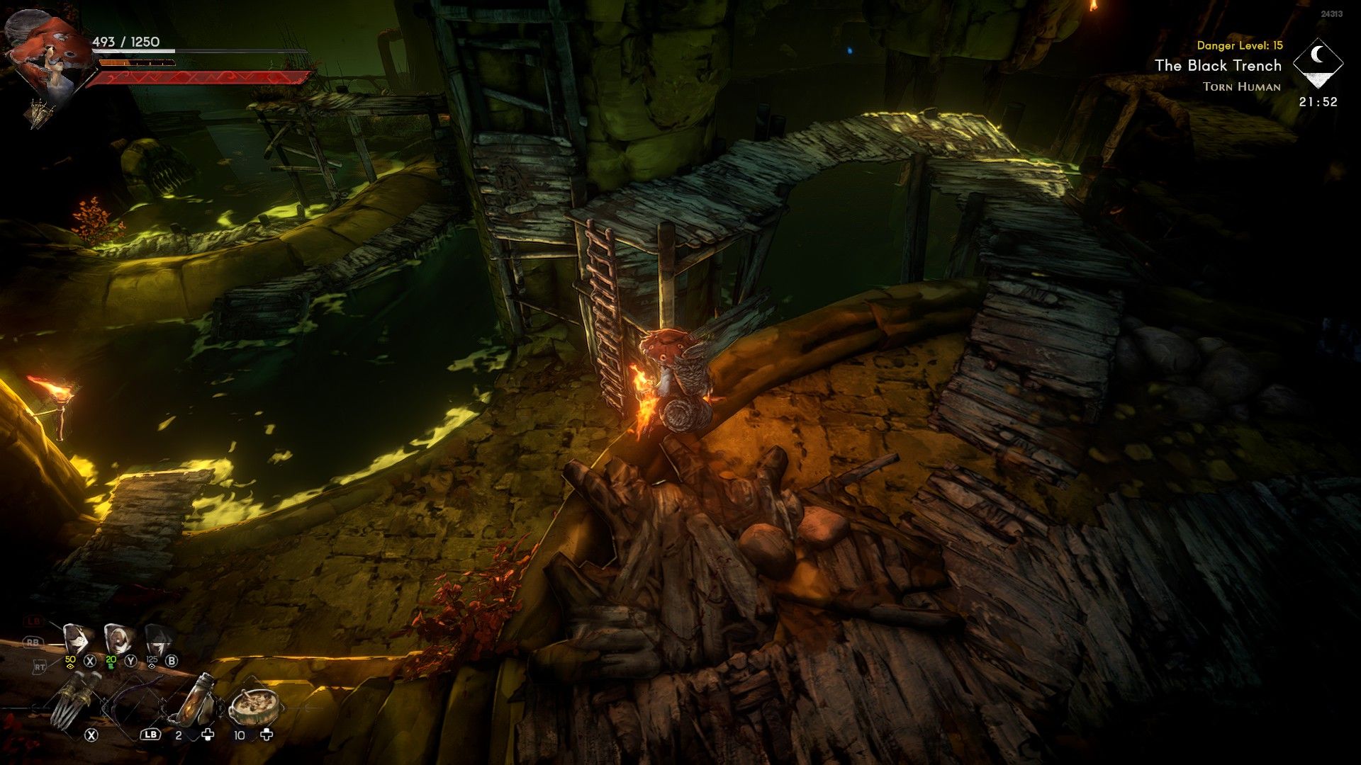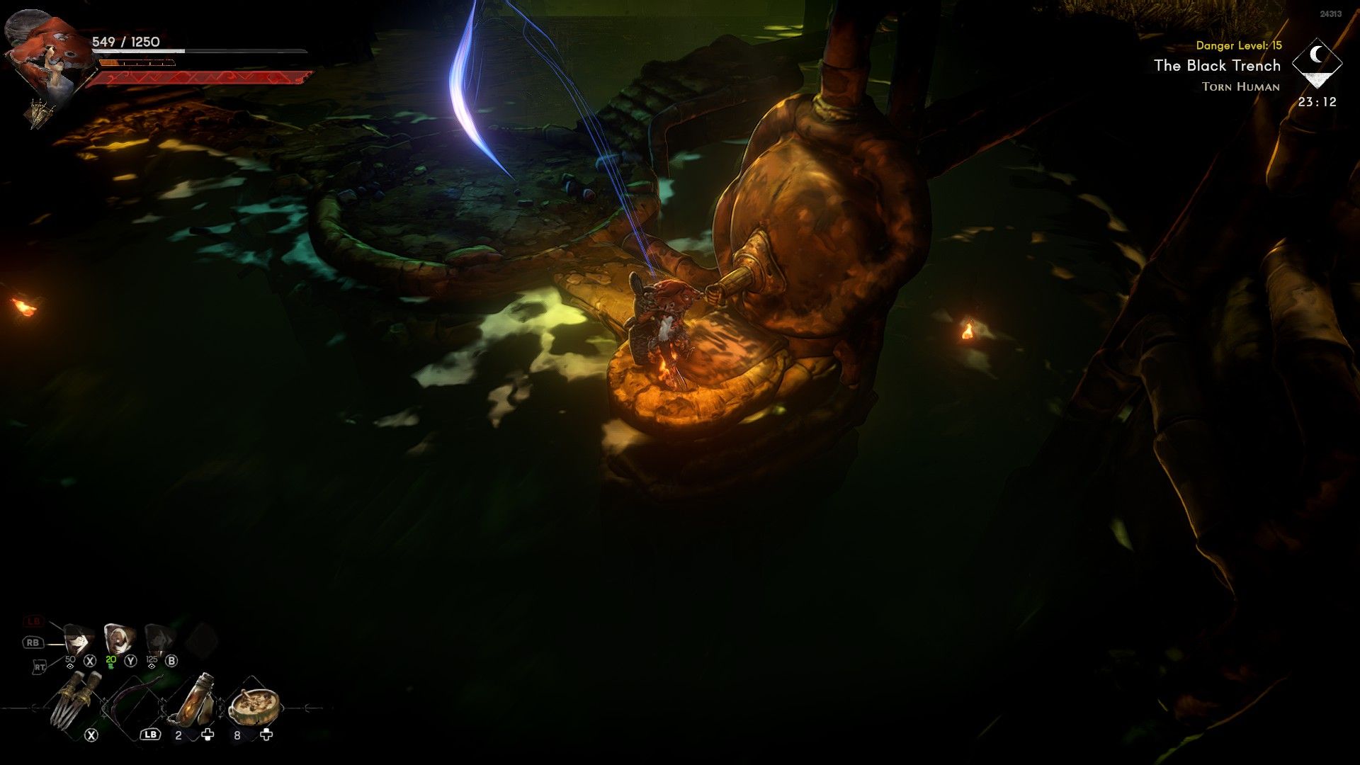 You’ll encounter Falstead Darak at the path’s end. He fights similarly to his battle on the bridge, but defeating him here transforms him into The Torn Falstead – a much more powerful and monstrous form.