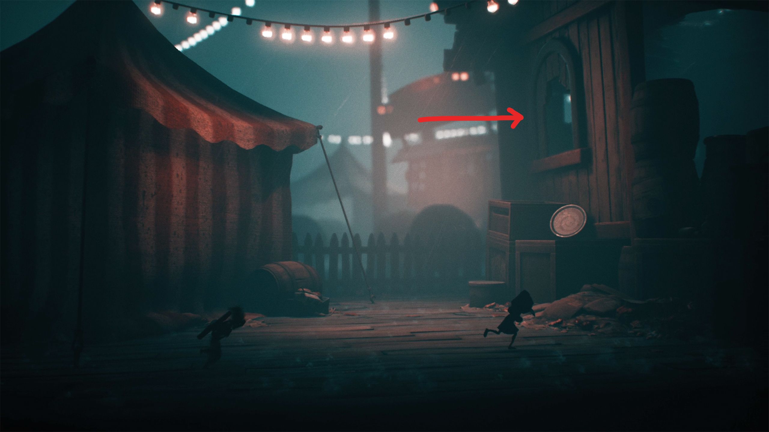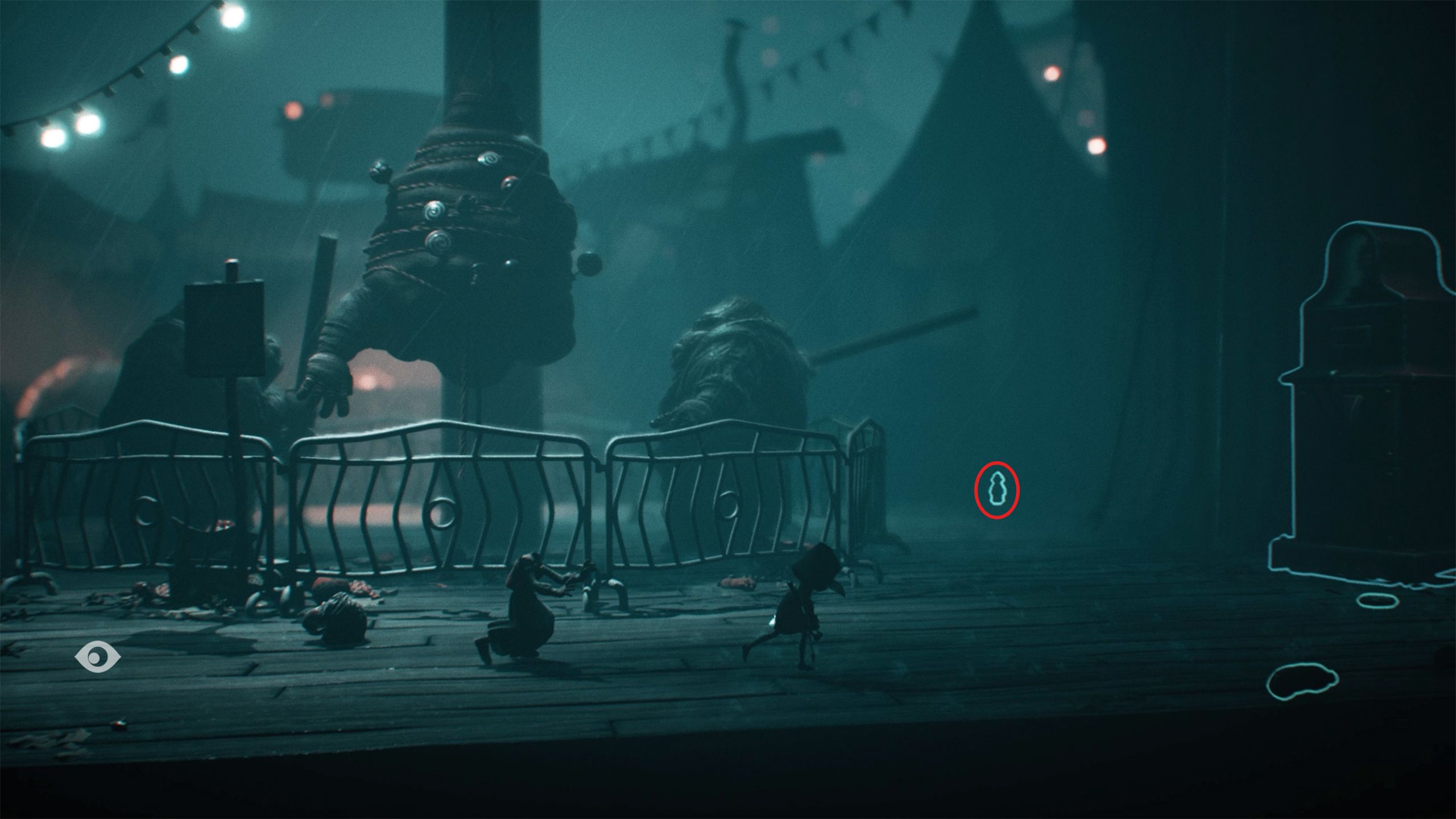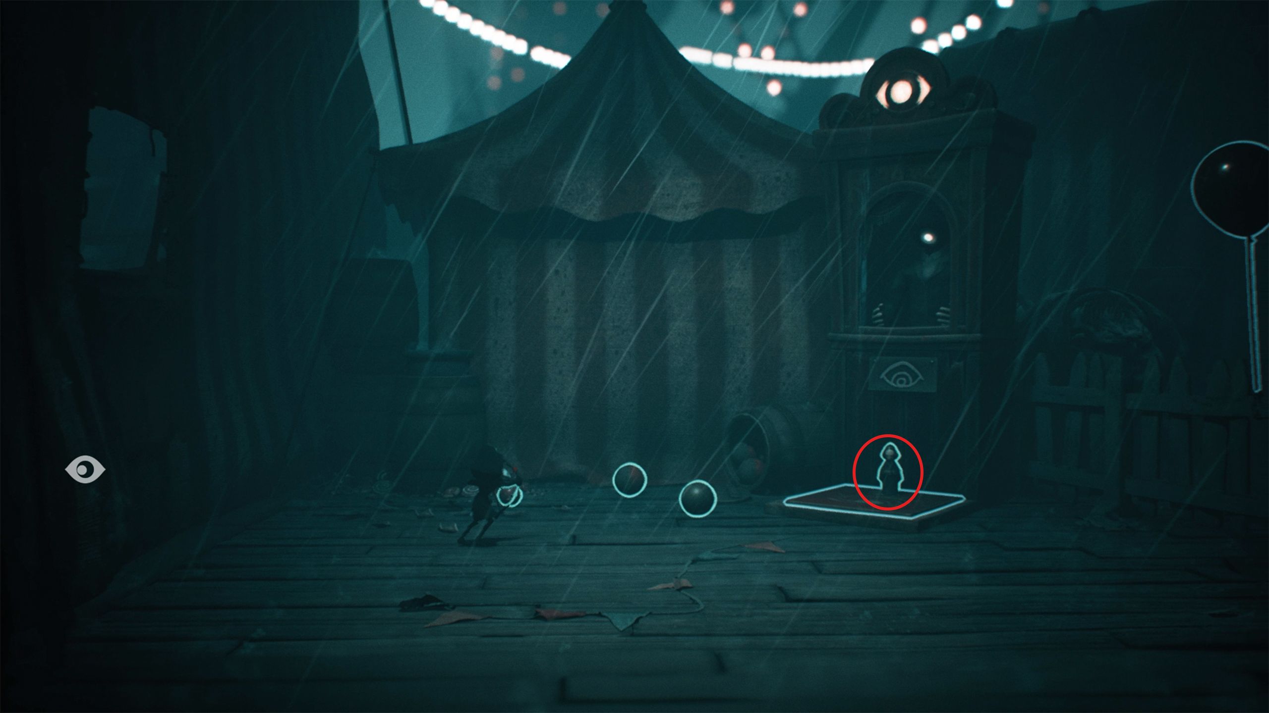 Once you’ve played the shooting game, continue forward until you find a broken well near a carousel. Use the lever to descend into a pool of dentures. Then, move to the right to pick up a doll and climb the wooden planks. Finally, look to your left to discover a Lady Statue hidden beneath the platform.