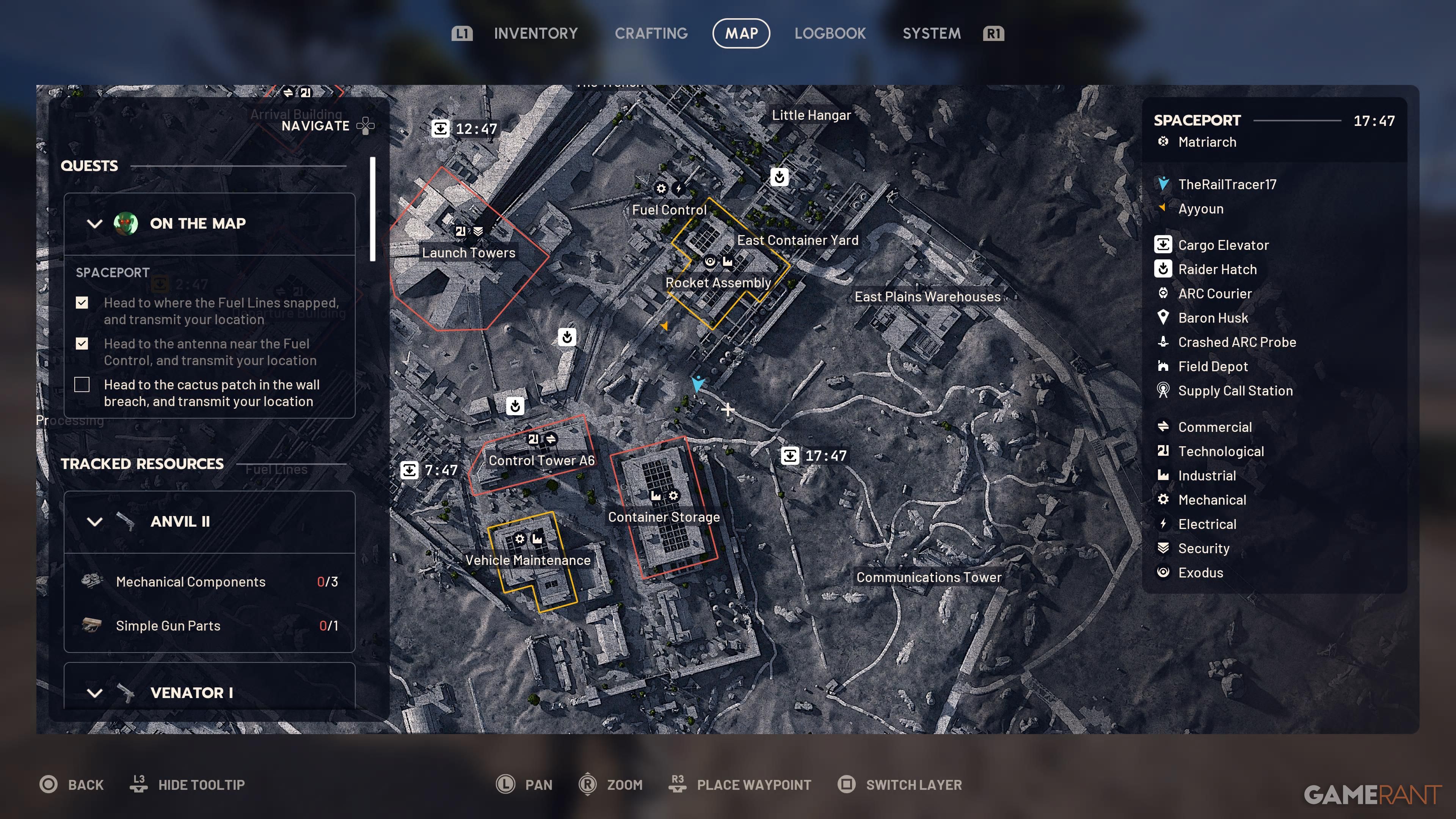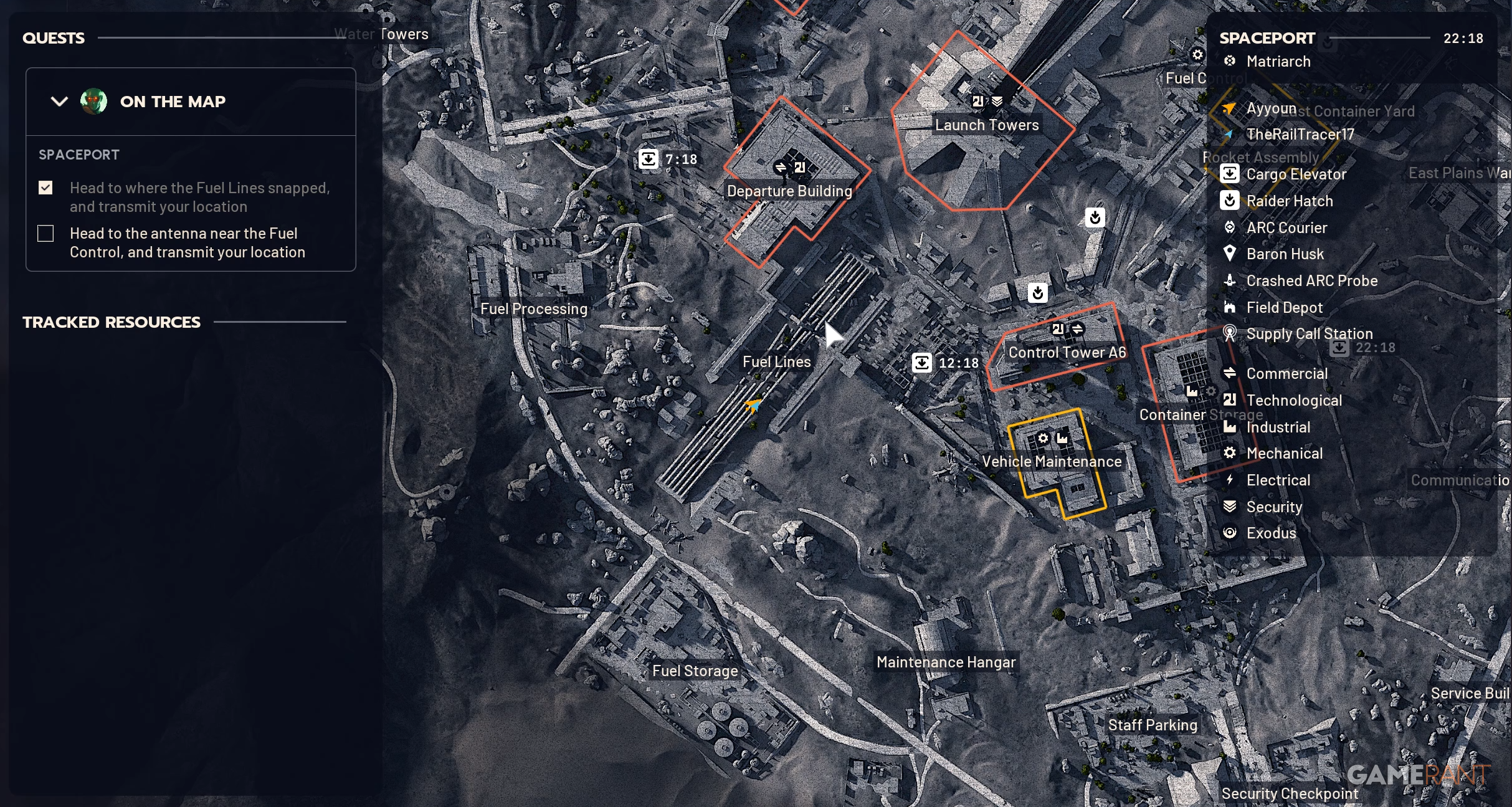 When you start at the Spaceport, head to the Fuel Lines to begin your first objective. You’ll find several spots within this area where you can complete it. If you’re having trouble locating it, just go directly below where “Fuel Lines” is displayed on the map. Once you’re there, you’ll be able to triangulate your position, which finishes the first step.
