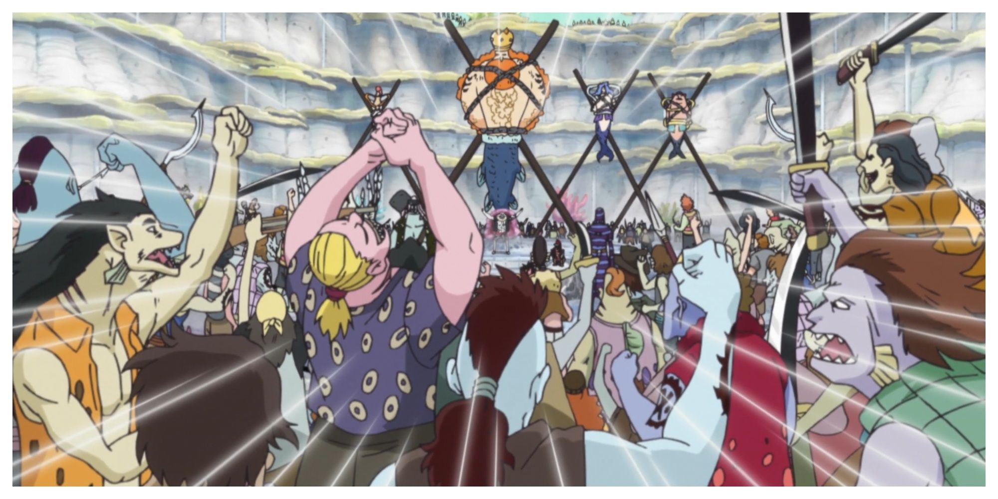 Fish-Men are a diverse group, being half-fish and half-human, and each type has unique abilities. For example, Arlong, a Sawshark Fish-Man, can constantly regrow his incredibly sharp teeth and uses his tough nose like a weapon to break through rock. Hachi, an Octopus Fish-Man, is skilled at fighting with six swords thanks to his many arms. But the most frightening aspect of the Fish-Men is the legendary Ancient Weapon, Poseidon. Born only once every few centuries, a mermaid princess with this power can control massive sea creatures called Neptunians. Legend says Poseidon can even destroy entire islands with just a single order.