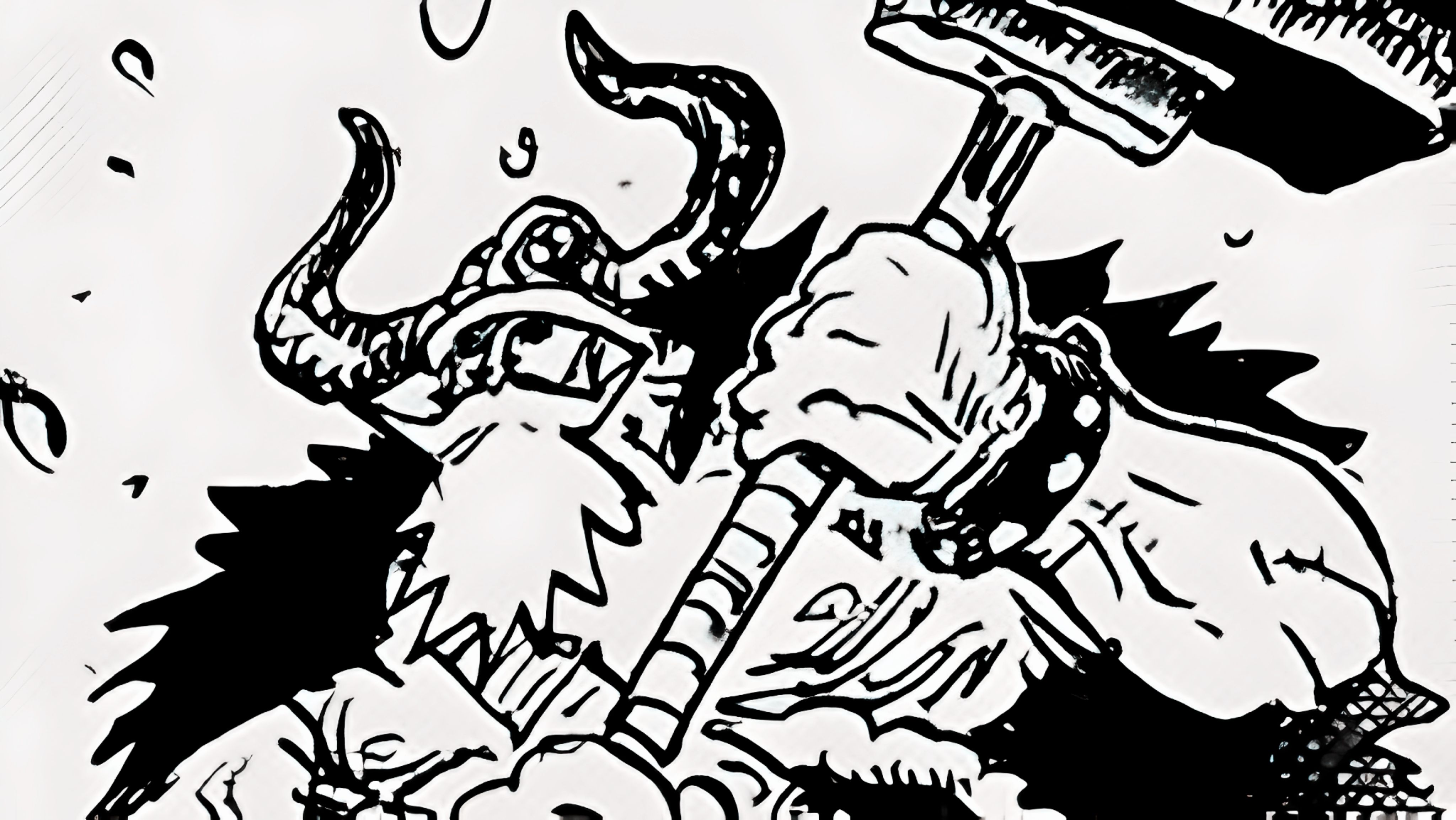 Ragnir first appeared during the Elbaf arc and is Loki’s partner. He’s quickly become a fan favorite thanks to his endearing personality. Ragnir is actually a hammer who ate a Devil Fruit! Long ago, he served the warrior god of Elbaf and fought alongside him against Nika on many occasions. Currently, he’s assisting Loki and Luffy in their battle against the Holy Knights, using his abilities to freeze and completely immobilize them.