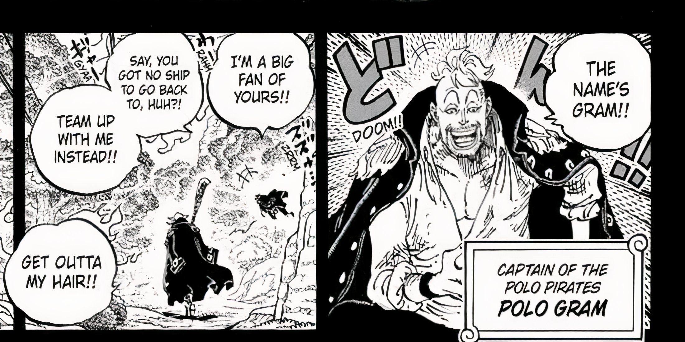 Following the disbandment of the Rocks Pirates, many former members became well-known and feared pirate captains, leading their own crews – Whitebeard among them. While the beginnings of the Whitebeard Pirates are largely a mystery, Eiichiro Oda may have recently revealed the very first member to join Whitebeard (Newgate) on his journey: a man named Polo Gram.