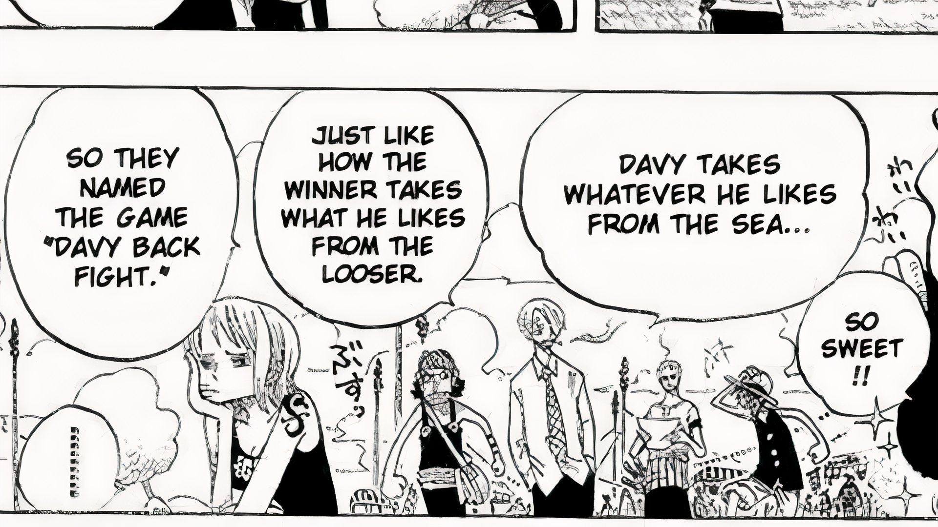 This short conversation, happening over just two panels and one scene in the anime, is easy to overlook, especially with all the chaotic events that follow during the competition. However, the true purpose of the Davy Back Fight itself subtly revealed both the identity of the mysterious pirate and their ultimate goal.