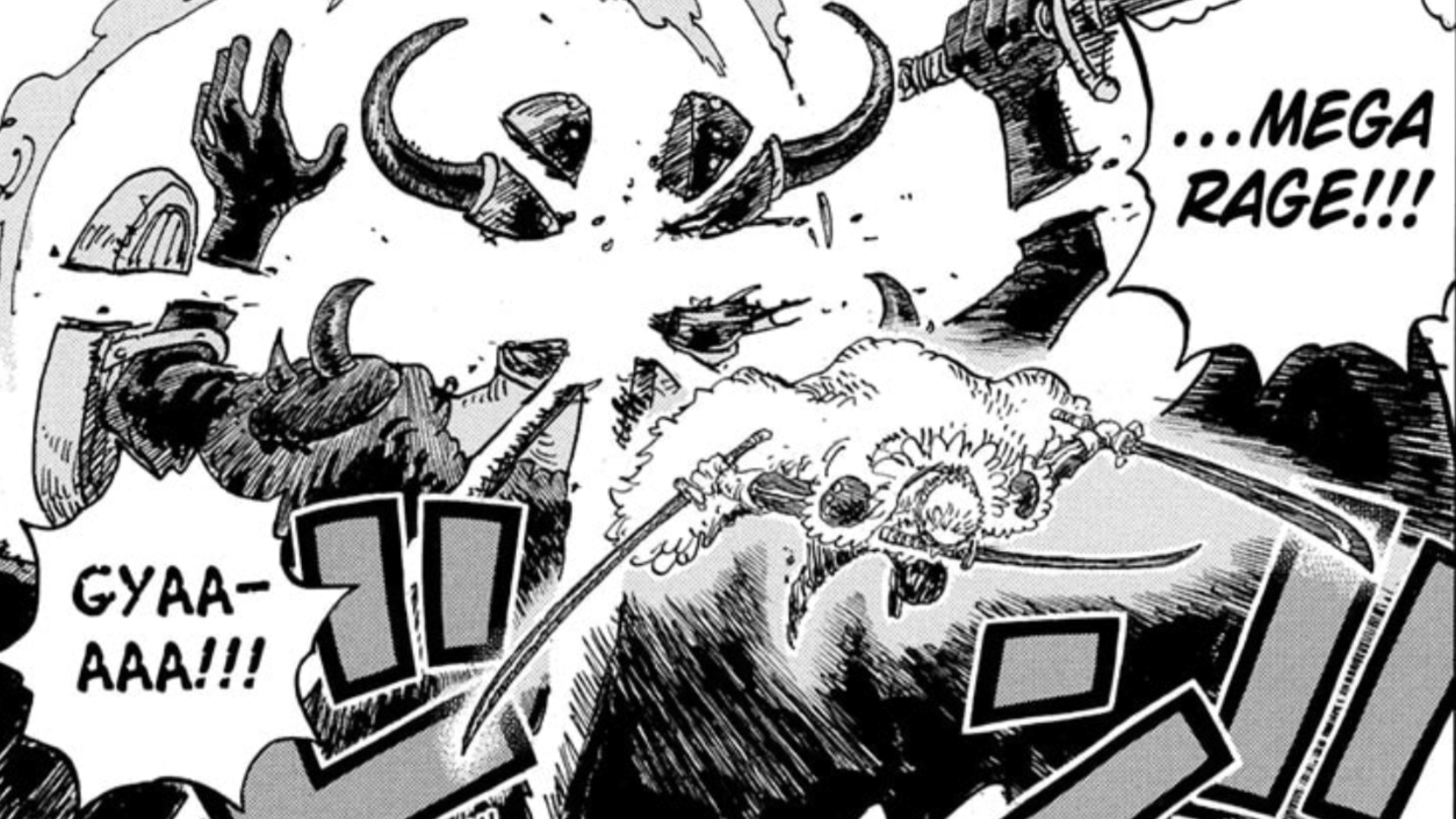 In One Piece chapter 1177, Zoro not only used his powerful Color of the Supreme King-infused Crossing of the Six Paths, but he also debuted a brand new Haki attack called Red Ogre Mega Rage. With this technique, he sliced a Giant who was enhanced by Domi Reversi into pieces and completely defeated him.
