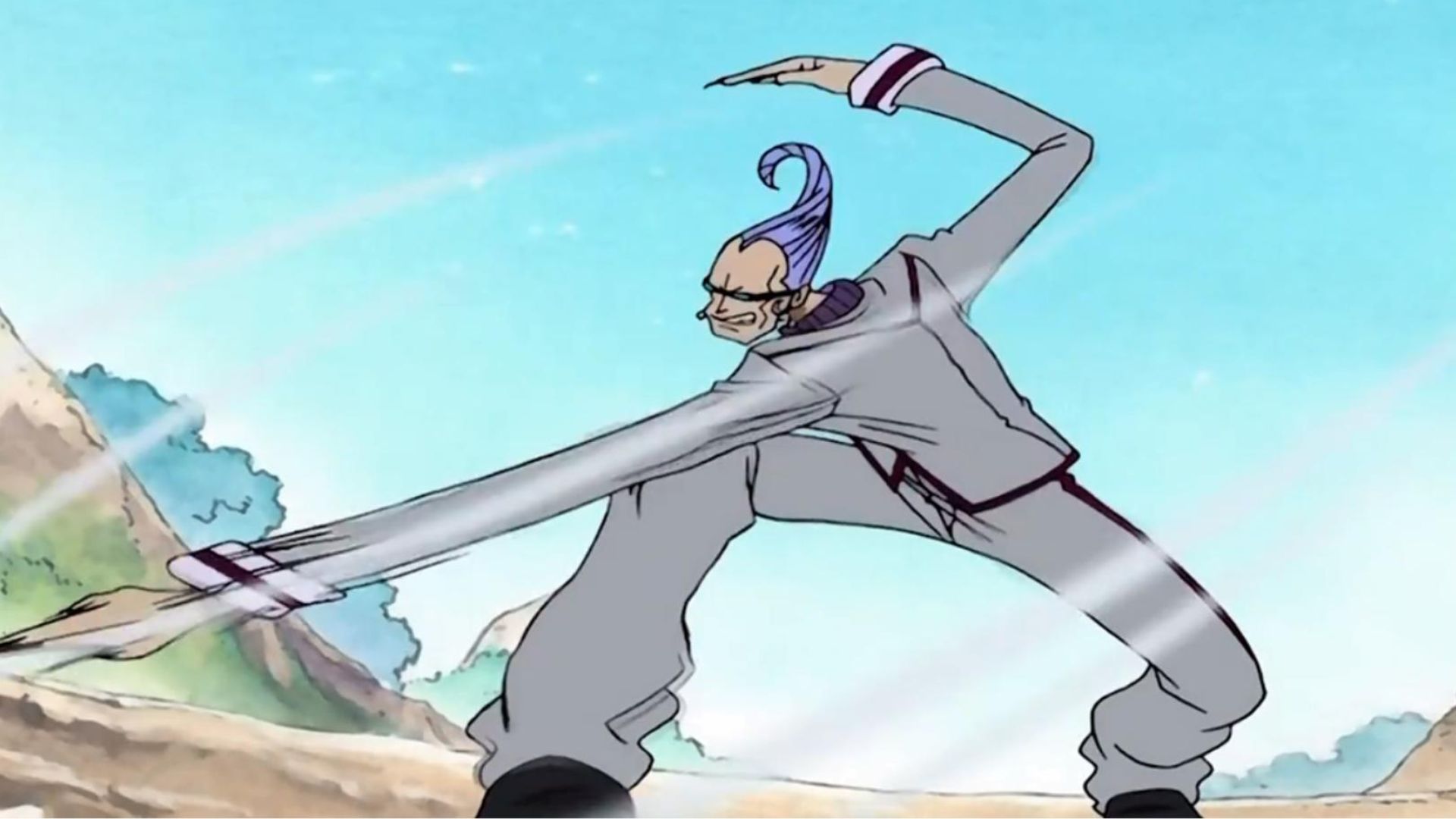 Besides using sharpened nails as weapons, Eric claims his wind blades are as powerful as top-quality swords – a pretty bold statement. Interestingly, the name of his Devil Fruit caused a running gag where Luffy mistakenly thought Eric was a flamboyant performer, similar to characters like Bon Clay and Ivankov, long before they appeared in the story.
