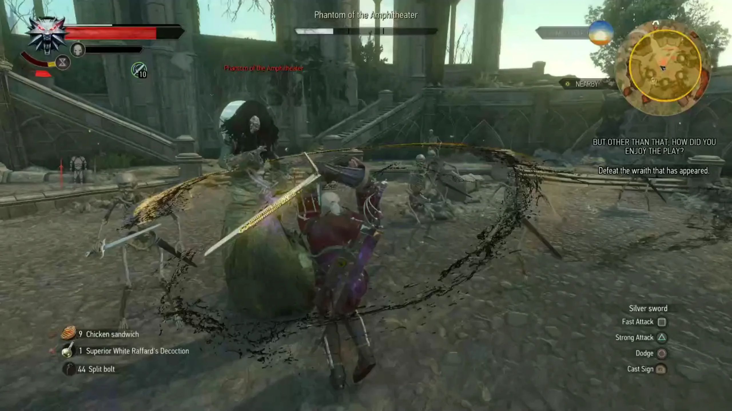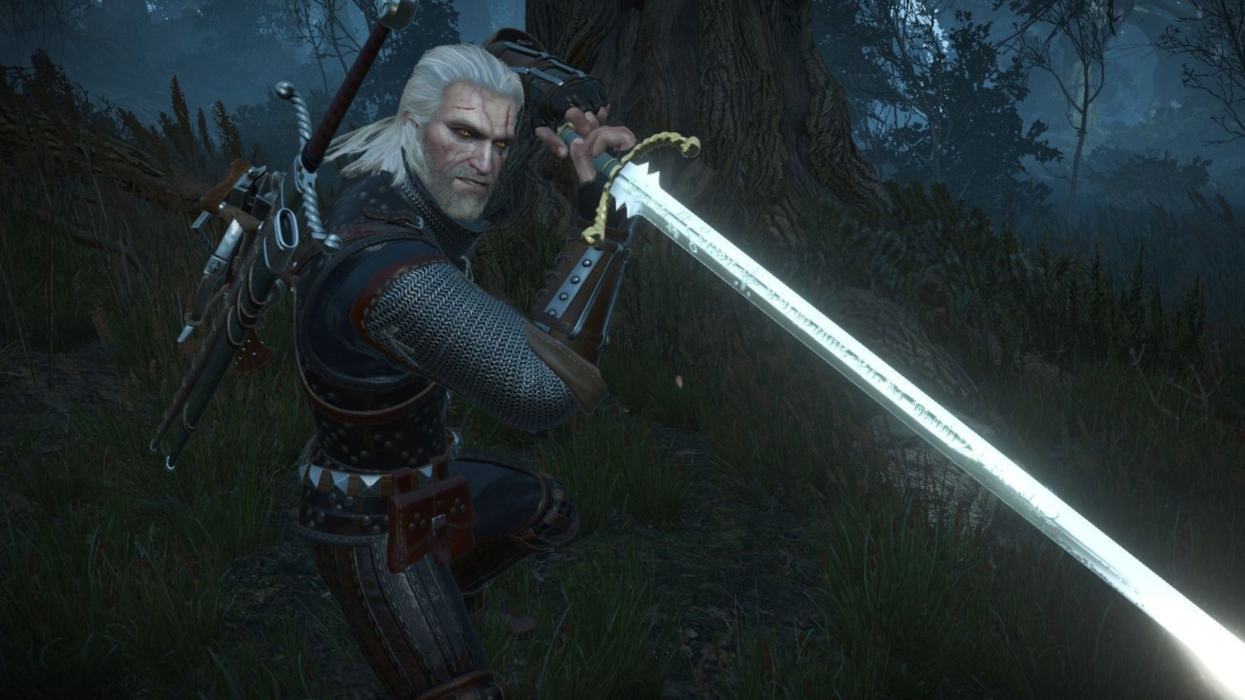 I’ve played a lot of fantasy games where you can pick up spears or maces, but in The Witcher 3, Geralt’s all about the swords. Forget everything else – he only uses swords for close combat, plus a crossbow for taking enemies down from a distance. He actually carries two swords with him everywhere – a steel one for fighting people and animals, and a silver one specifically for monsters. It’s a key part of how the combat works!