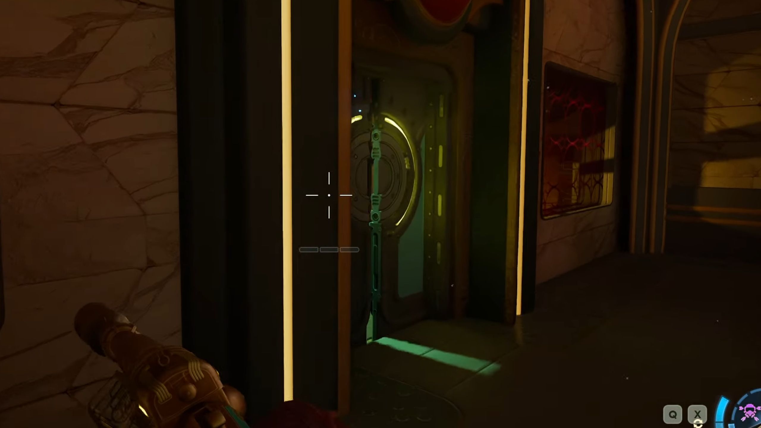 On the upper level, south side of the room, there’s a door that you can open if you have the Brawny skill or an Engineering level of 5.