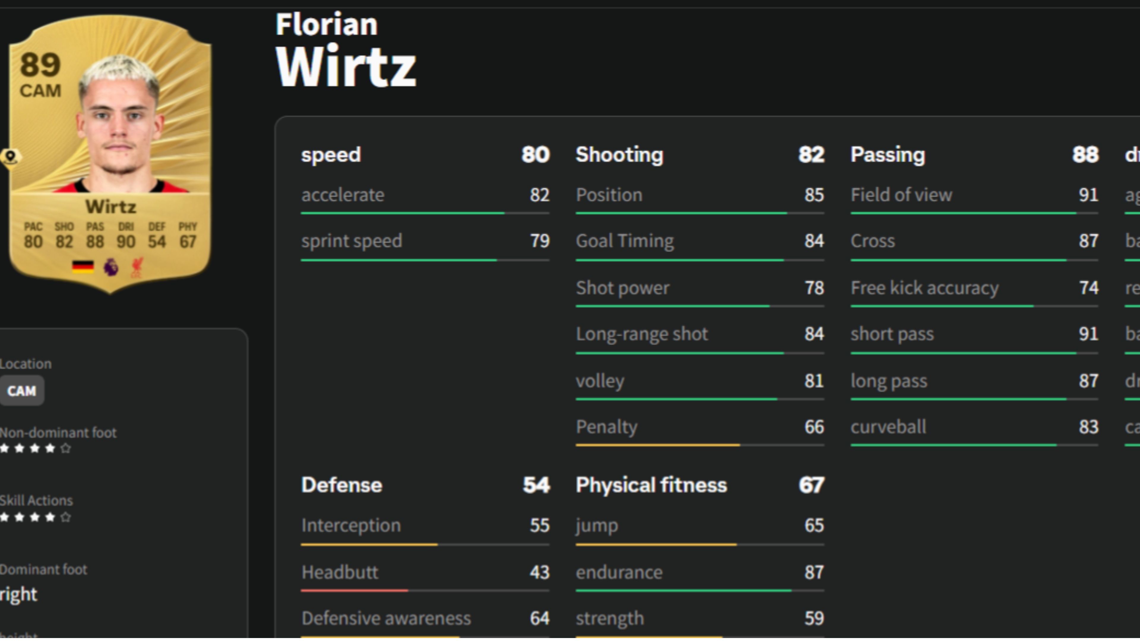 Florian Wirtz is a brilliant player when he has room to operate, but he can struggle under pressure. He’s not very physically strong, making it easier for opponents to win the ball from him, and while he’s reasonably quick, he isn’t exceptionally fast. His finishing can also be unreliable when closely marked. Bruno Fernandes offers a comparable skillset, but is significantly more affordable. With an overall rating of 88, he remains highly competitive, and his excellent long shots, passing, and positioning make him a very effective attacking midfielder for the price.