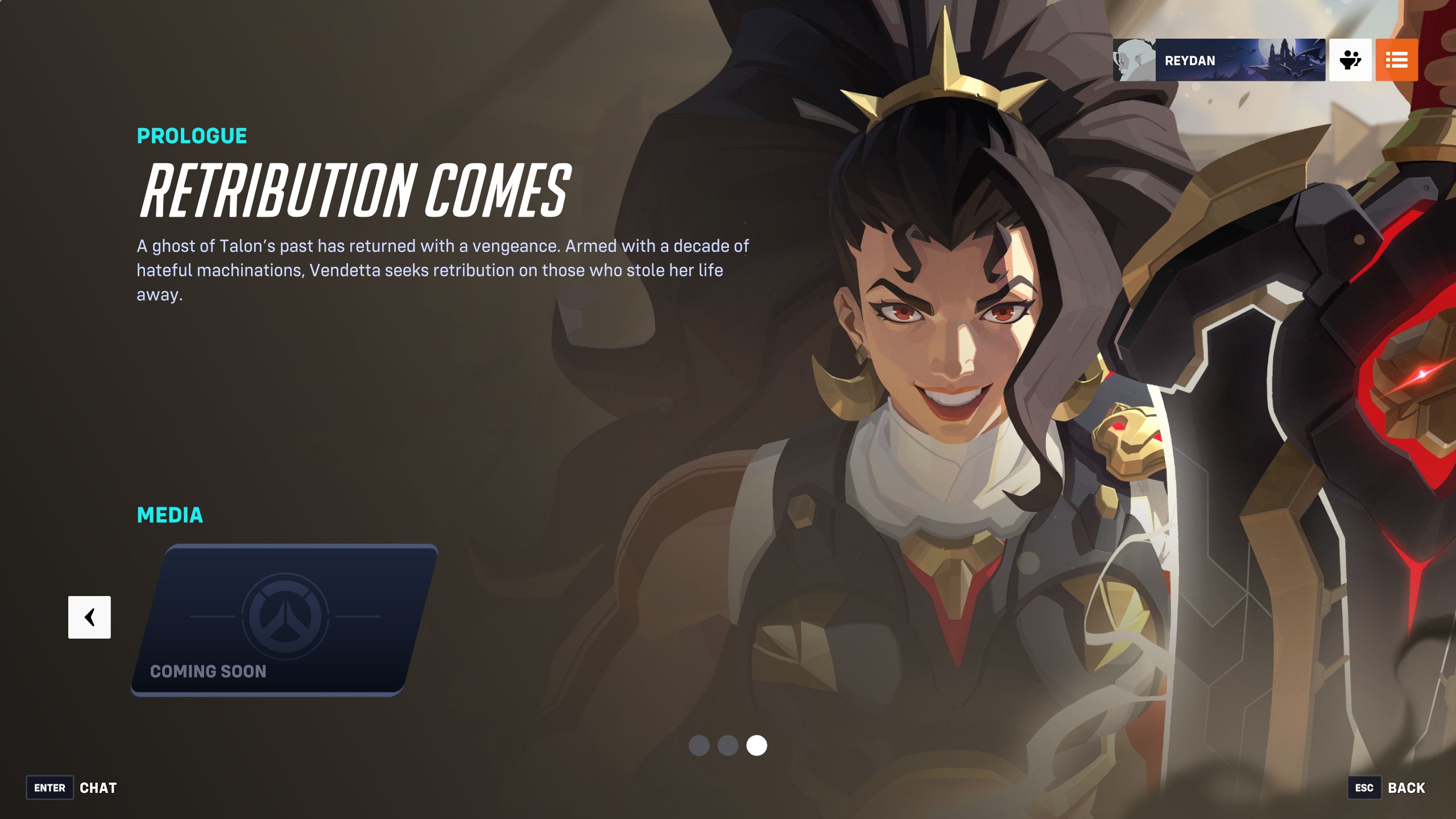 Image via Blizzard Exciting new story content is on the way to Overwatch 2! The in-game Story feature recently received an update with the prologue for “Vendetta,” hinting at the backstory of the upcoming hero and her quest for revenge. A space for a new cinematic about this character has been added to the in-game timeline, suggesting it will be released by December 9th, or possibly even earlier that week.