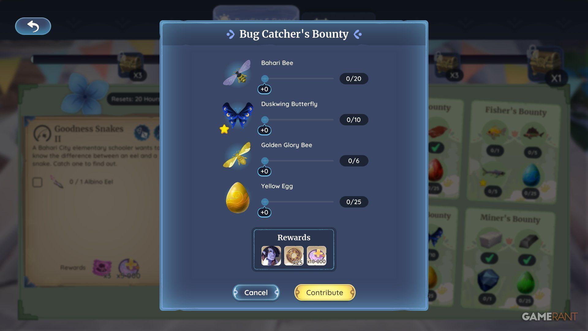 | Yellow Eggs | 25 | This new item can be dropped at random when catching any type of bug or insect in Kilima Village, Bahari Bay, and the Elderwood. |