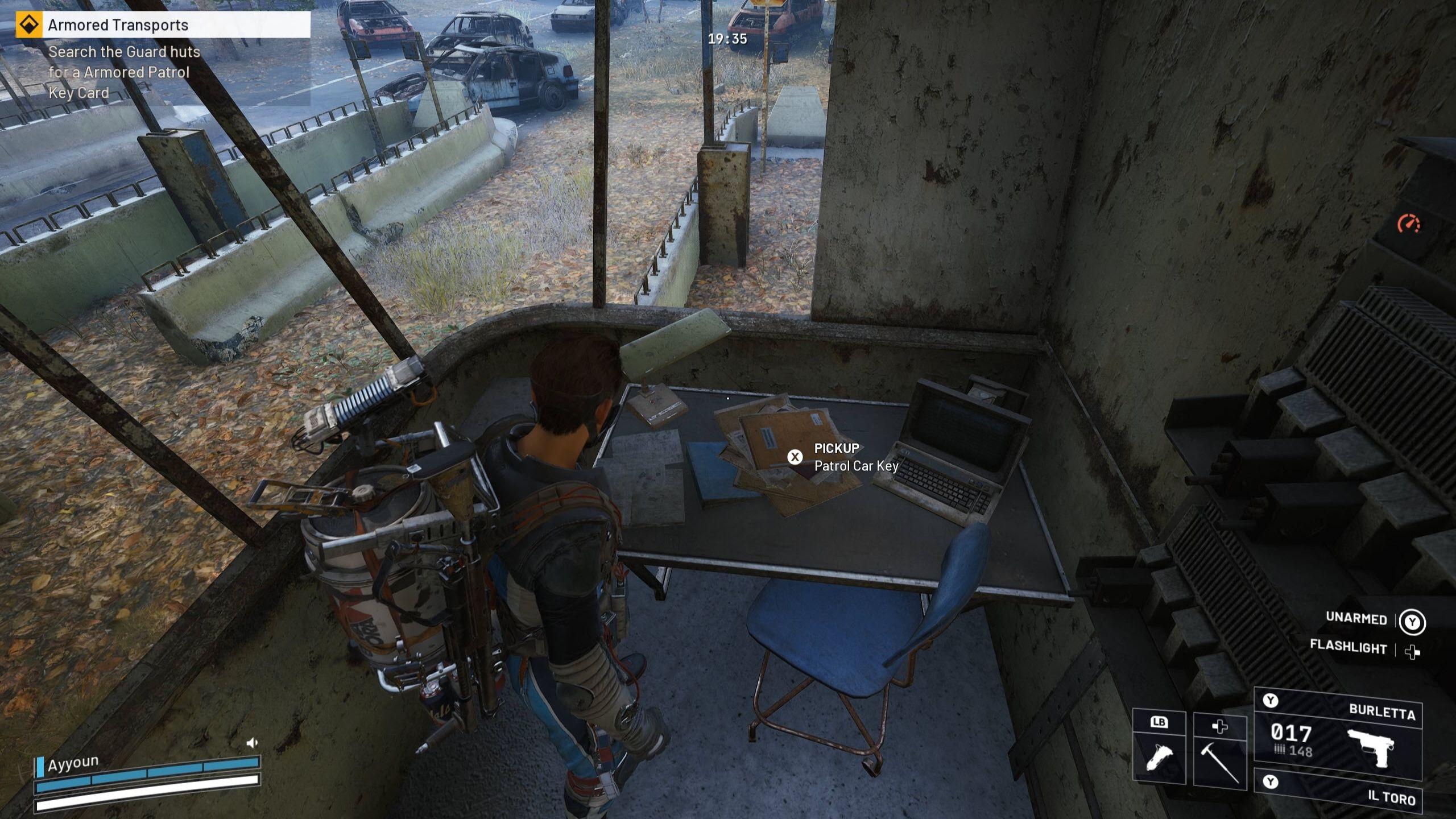 Once you search the checkpoint booths, you’ll find the key for the Armored Patrol Car. Be careful while looking around, though – Wasps, Hornets, and a Bombardier are all patrolling the area.