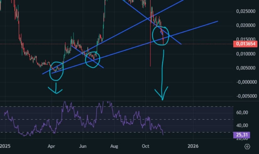 If short-term liquidity stabilizes and buyers defend the $0.012 to $0.014 range, the setup could flip rapidly into a recovery structure, validating the bullish scenarios presented by Martinez, SEMB, and BRUH. Until then, participants should watch for RSI recovery and volume expansion as early cues of a potential reversal cycle into December. π¨π