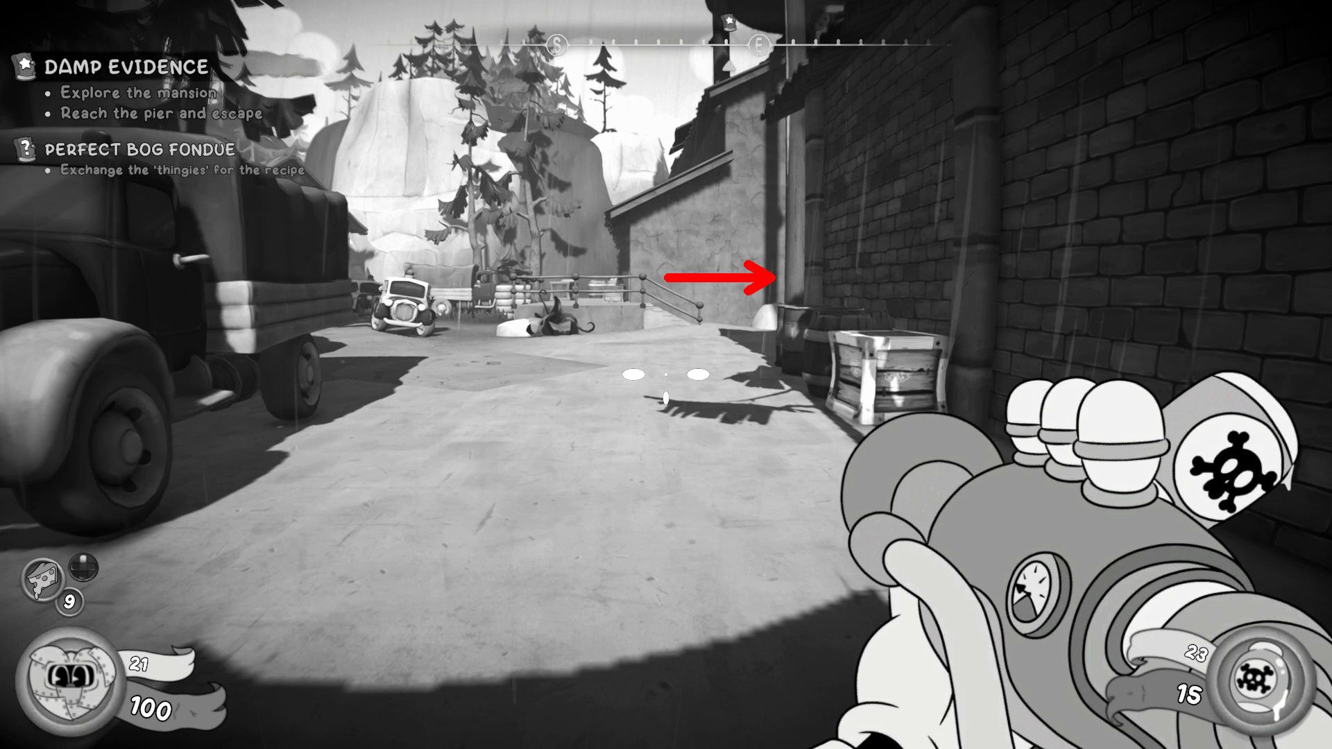 You’ll find the third item in the swamp, after you pass the mansion. Look for a large, wrecked ship, and the item is hidden under a pallet propped up against its smokestacks.