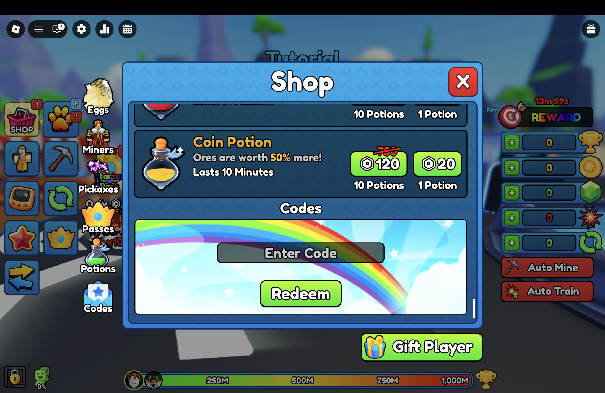It’s easy to redeem codes in Pickaxe Simulator – you don’t need to do anything special beforehand. Just go to the game’s menu and enter one of the current, valid codes into the designated box. If you’re new to the game, here’s a simple guide to help you redeem them, step-by-step.