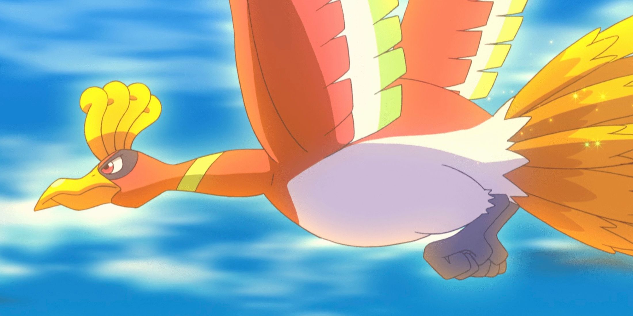 Recently, Ash and Pikachu saw Ho-Oh flying near a rainbow after a big storm. This sighting became important in the movie Pokémon the Movie: I Choose You!, as Ash hoped to battle it. In the Pokémon TV series, Ho-Oh is very elusive, and few people ever get a glimpse of it. However, a past event showed that Ho-Oh is a powerful fighter, especially when using its special move, Sacred Fire.