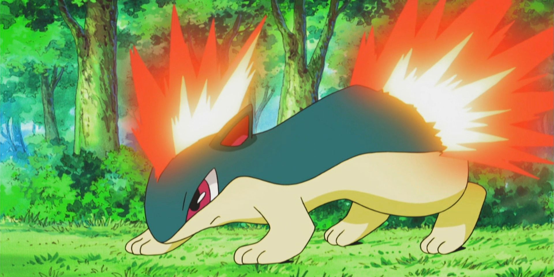 Ash has a habit of befriending all kinds of starter Pokémon, including those previously owned by other trainers or living freely in the wild. A good example from his adventures in the Johto region is his Cyndaquil, whom he encountered in a forest full of its species. Often seen as the youngest member of his team, Cyndaquil tired easily, but was surprisingly fast and could unleash strong Flamethrower attacks. These attacks became even more powerful when Cyndaquil evolved into Quilava.