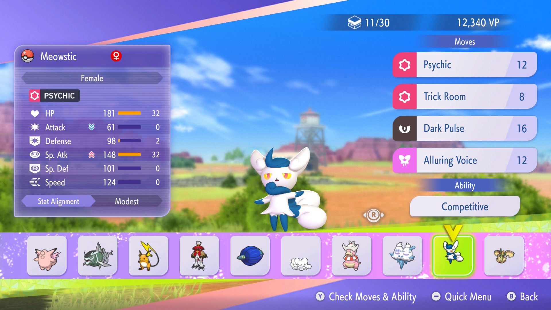Meowstic is a good example of a Pokémon with limited battling strength, even in its Mega Evolved form. However, a support-focused Meowstic, using its Prankster ability to quickly set up Light Screen or Reflect, can be a fantastic partner for strong attackers like Garchomp, Dragonite, or Drampa. It can create protective barriers with priority, keeping its teammate safe while they power up with moves like Dragon Dance.