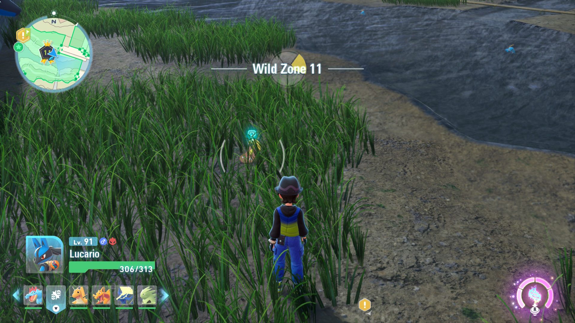 Stunfisk is the simplest of these Pokémon to catch. You can often find groups of them hidden in the reeds along the riverbank. Be aware that this area has many aggressive Pokémon, particularly the Alpha Clawitzer.