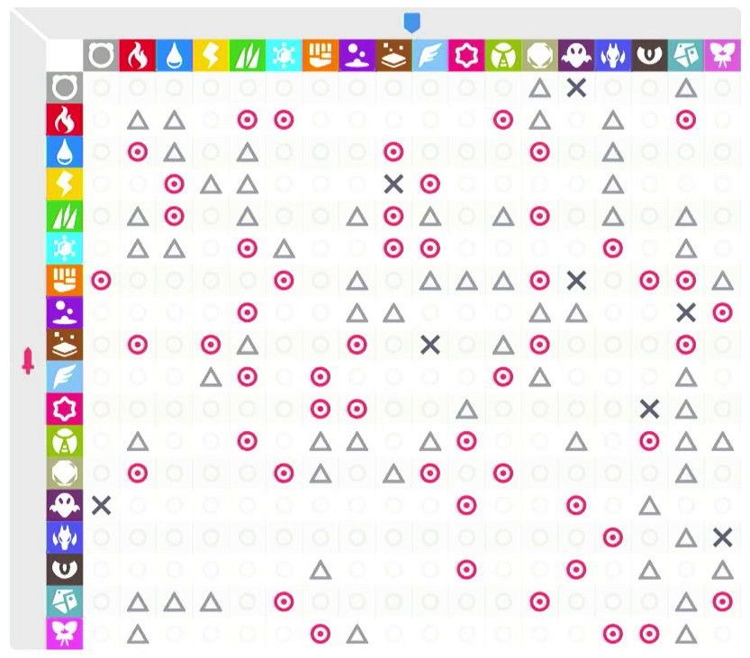 - ◯: The targeted Pokemon has no weakness or resistance to the move.