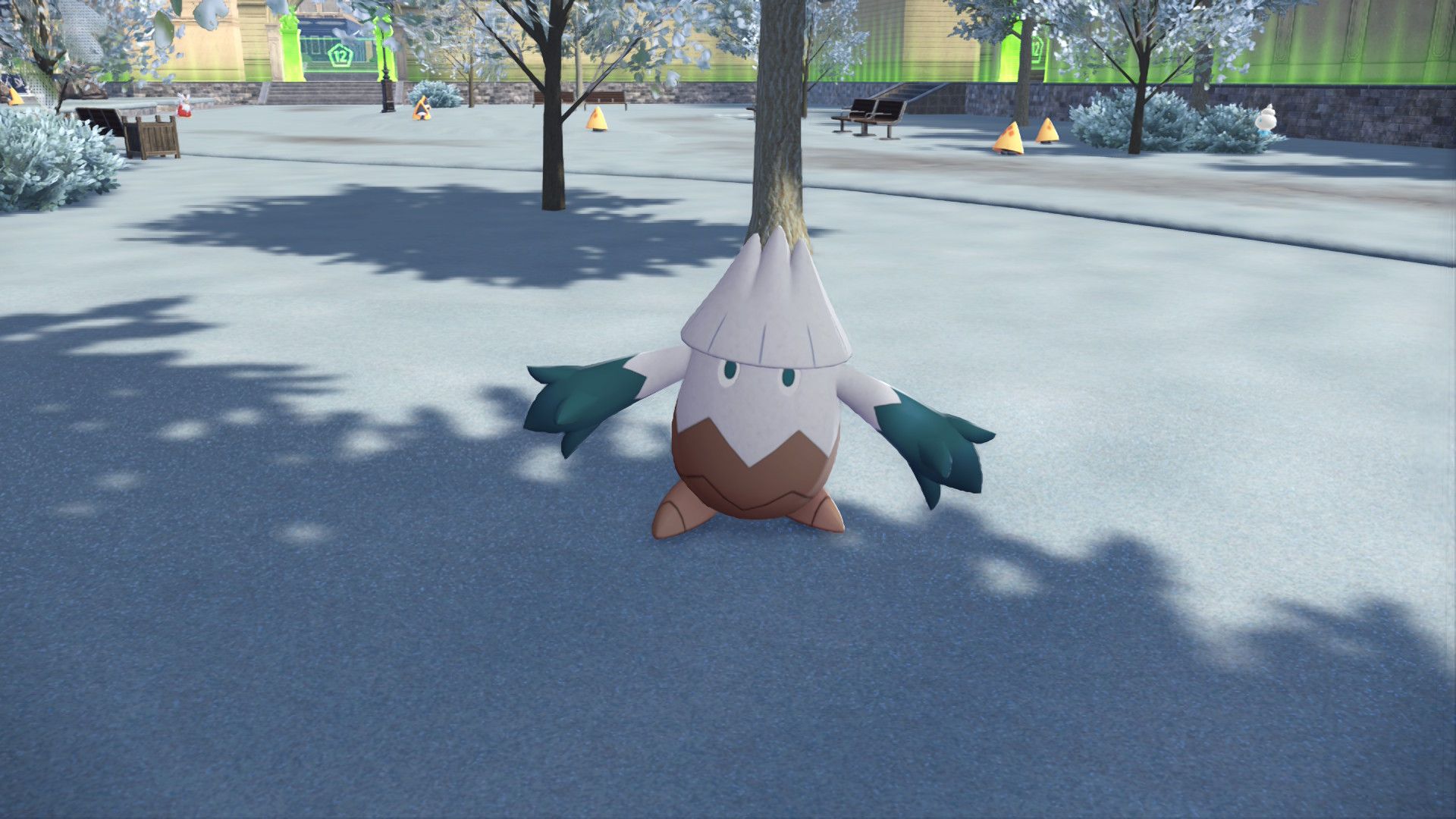 In addition to Ice-type Pokémon like Vanillite, Snover, Snorunt, Bergmite, and Delibird, you can find Machop and Machoke playing on the court in Wild Zone 12, and Gogoat roaming the fields. Wild Zone 12 is also home to two Alpha Pokémon: Alpha Abomasnow and Alpha Avalugg, with Avalugg appearing in the water. However, surprisingly, Delibird is the hardest to find of all these Pokémon, even though it has three possible spawn locations, as it disappears quickly.