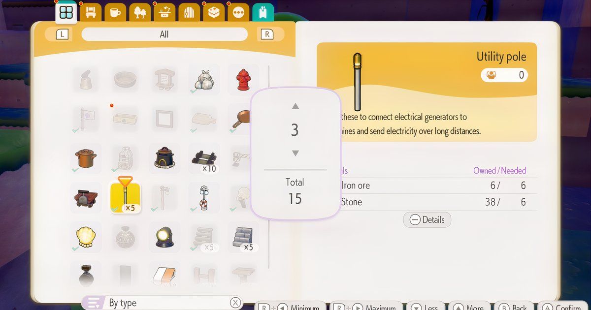 Using existing structures or good building locations can speed up progress, particularly when connecting everything with Utility Poles. Players can also change the landscape using moves like Suck and Rock Smash to create the ideal setup.