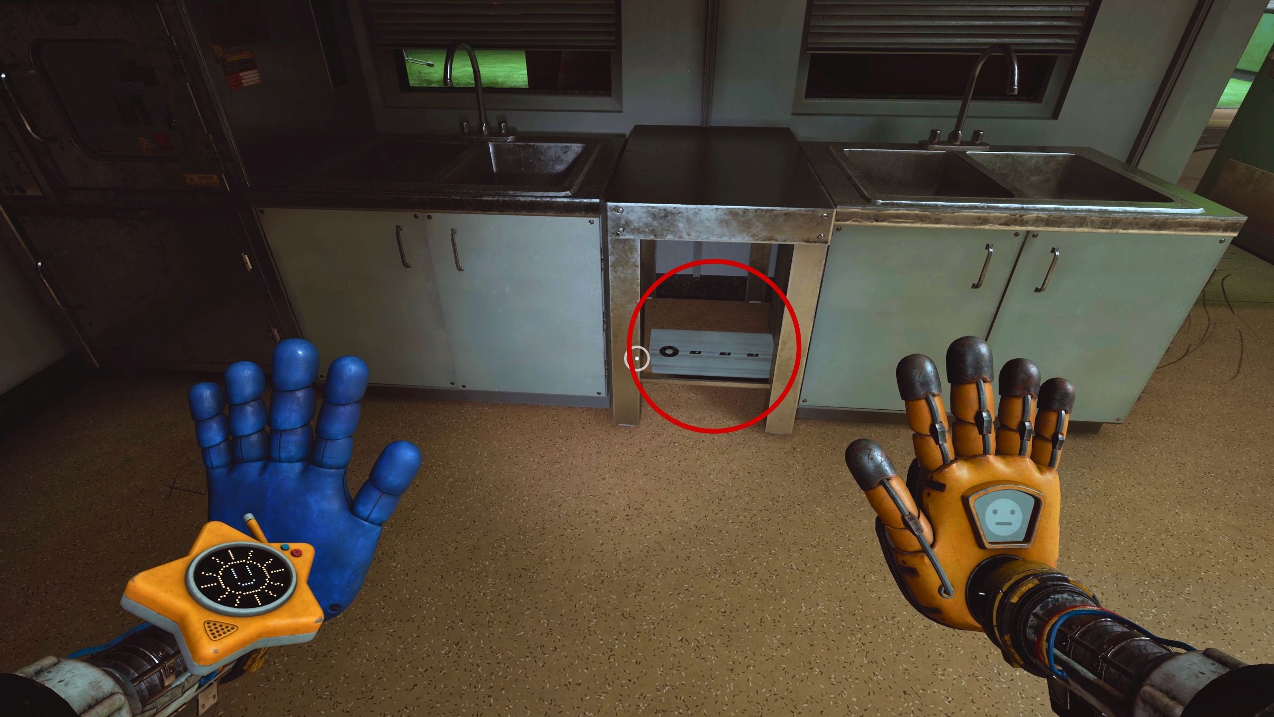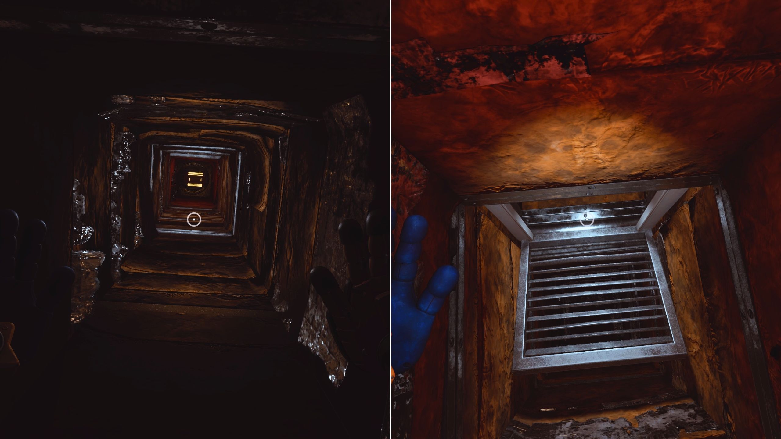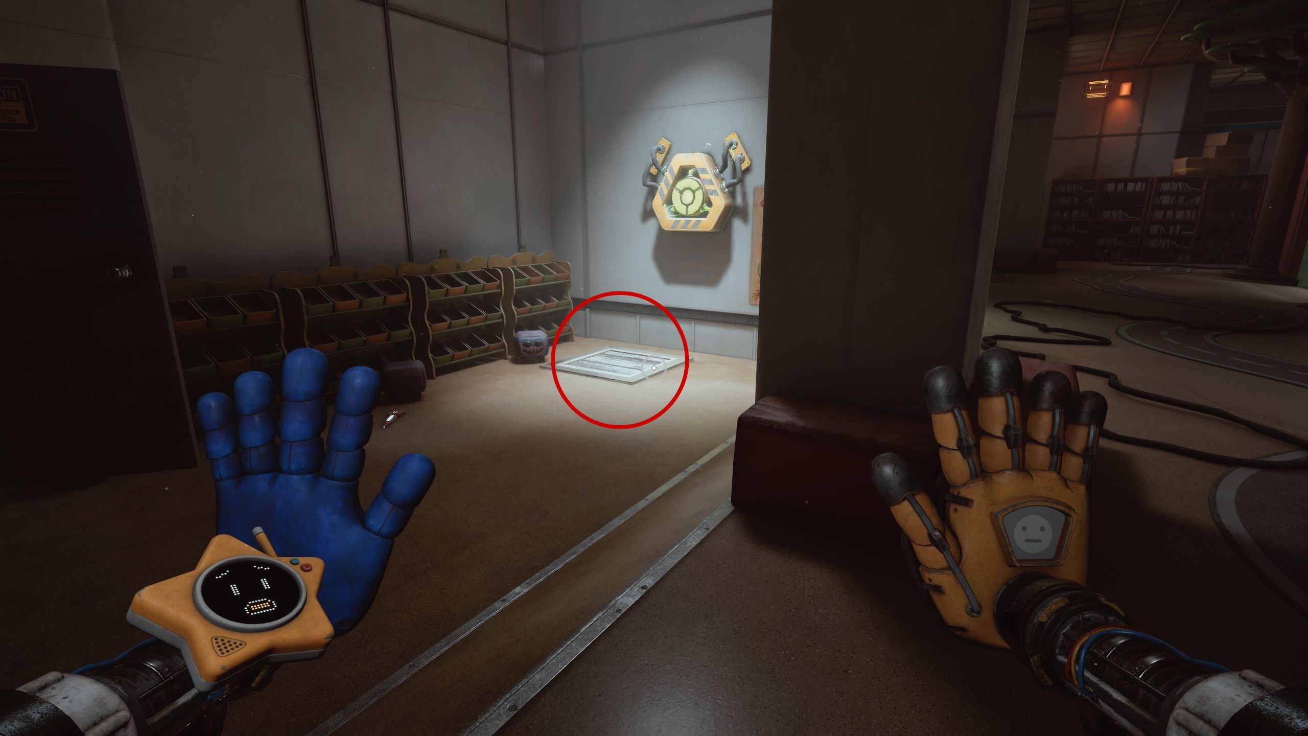 Continue along the vent until you reach its end. Look up – you’ll see a handle for your GrabPack. Once you’ve used the GrabPack to swing up and grab onto the handle, look down. You’ll notice another vent cover. Use the second hand of your GrabPack to interact with it, which will allow you to crawl further and drop down into one of the locked rooms.