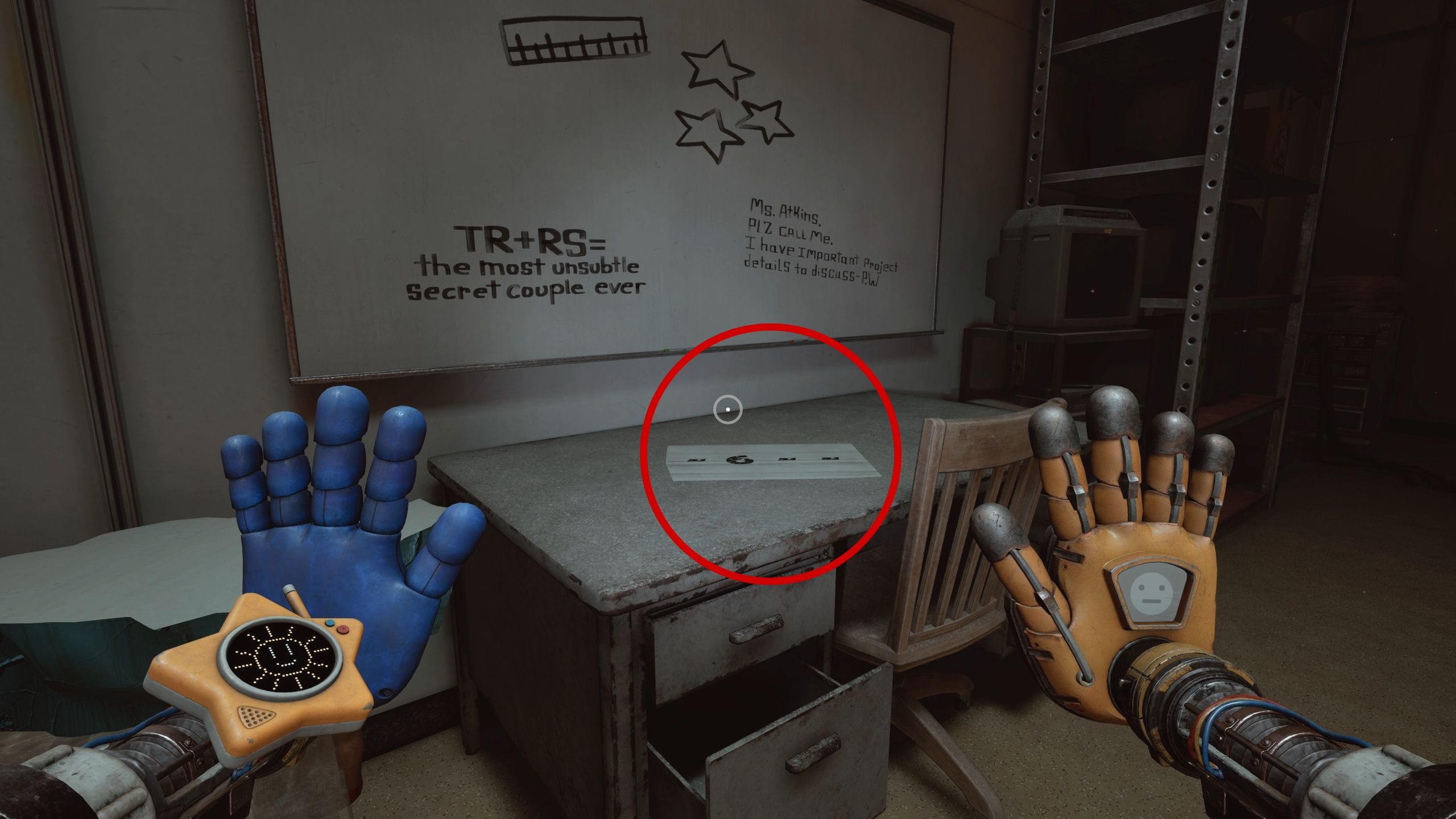 | The paper with the last digit of the Huggy Wuggy escape room locker code can be found inside the room that you access through a hole in the wall, and acquire the third battery. It’s sitting on the desk under the whiteboard. |