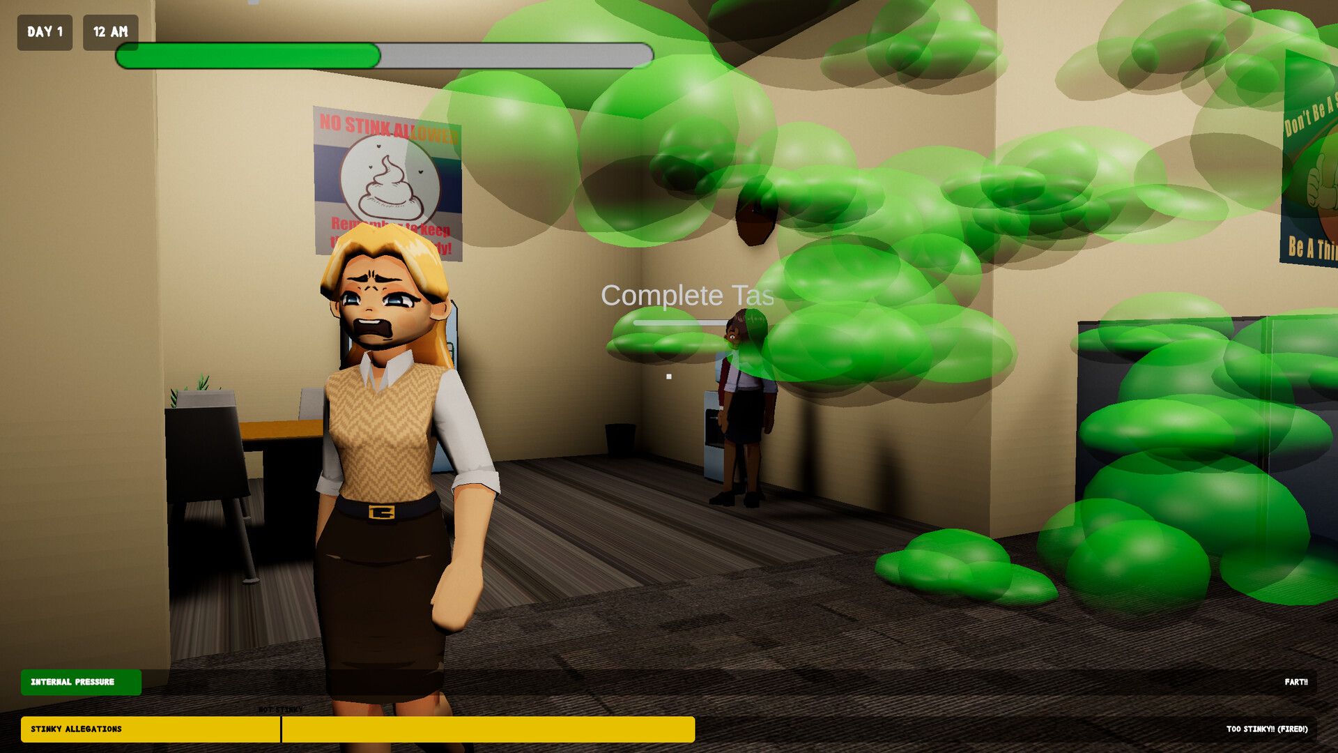 Mask Da Fart is a funny stealth game about surviving the workday while secretly battling an embarrassing problem: uncontrollable flatulence! You’ll navigate a bustling office, trying to complete tasks and avoid getting caught. The game uses systems to track how much smell and sound you’re making, as well as how suspicious your coworkers are. You’ll need to strategically cover up your… issues to avoid getting reported or losing your job. It’s a short, replayable indie game that combines silly humor with stealth gameplay and a satirical look at office life.